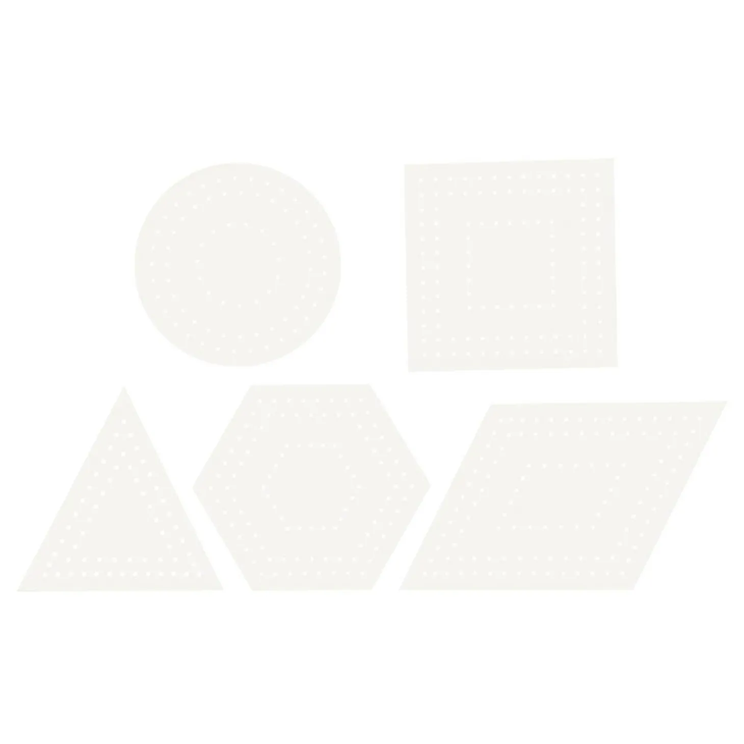 Uitgestanste figuren van stevig karton met gaten voor borduurwerk. Kunnen met elkaar worden gecombineerd om op te hangen