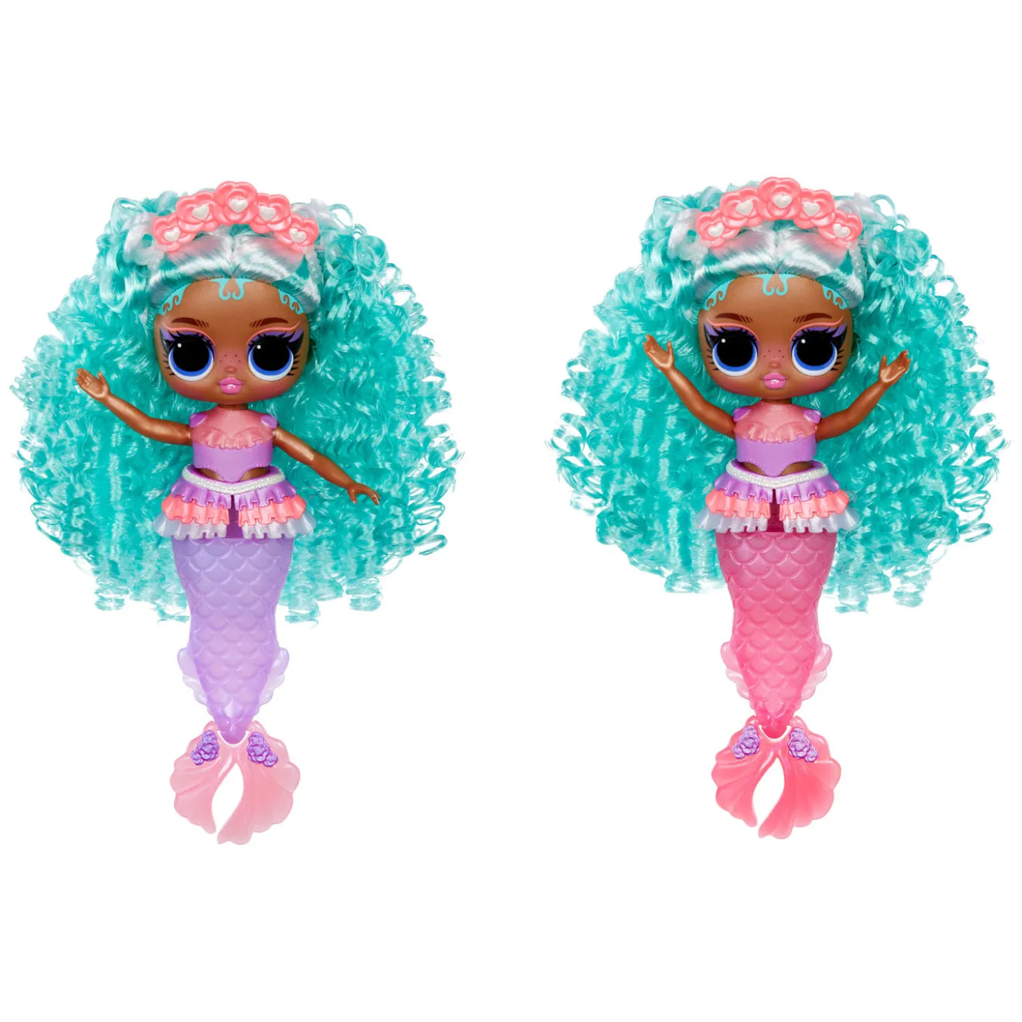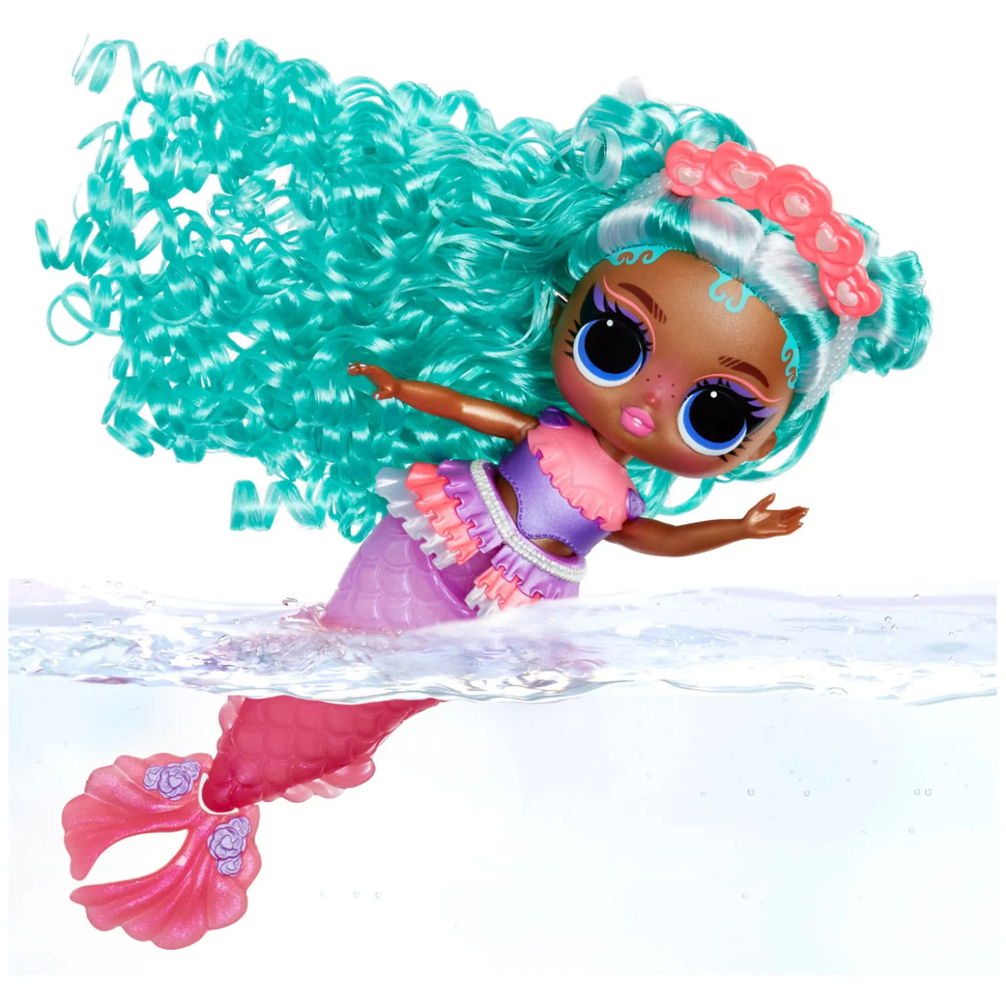 Duik in een betoverende wereld vol kleurenmagie en verrassingen met de gloednieuwe L.O.L. Surprise Tweens Mermaid Serena Finn™-modepop met adembenemende accessoires om uit te pakken! Perfect voor in bad en om fantasierijk mee te spelen: het plezier spat ervanaf met Serena Finn™ met haar schitterende staart met kleurverandering en betoverende vin die echt kan bewegen! Doop je Tweens Mermaid-pop in koud water en kijk hoe de kleur van haar staart verandert van lichtpaars in magenta voor een magische onderwaterervaring! Kun jij raden in welke kleur haar roséroze vin verandert? Vergeet niet om je pop te stylen met haar betoverende accessoires zoals haar zeebril, bloemenhaarband en schattige parelriem met ruches! Ze heeft een heel mooi gezichtje, prachtig haar, haar eigen modieuze zeemeerminnenlook en beweegbare ledematen voor heel veel houdingen. Ze kan bijvoorbeeld ook zitten! Ook kan ze stabiel op haar vin staan, waardoor je haar makkelijker kunt stylen! Ontdek wat er in elke doos zit, zoals een schitterende L.O.L. Surprise Tweens Mermaid-pop, bril, haarband en een riem die bij de staart van de pop past! Verzamel alle 4 de glamoureuze L.O.L. Surprise Tweens Mermaid-modepoppen: Cleo Cove™, Lola Waves™, Lana Marine™ en Serena Finn™ voor een complete set eindeloos veel zeemeerminplezier!