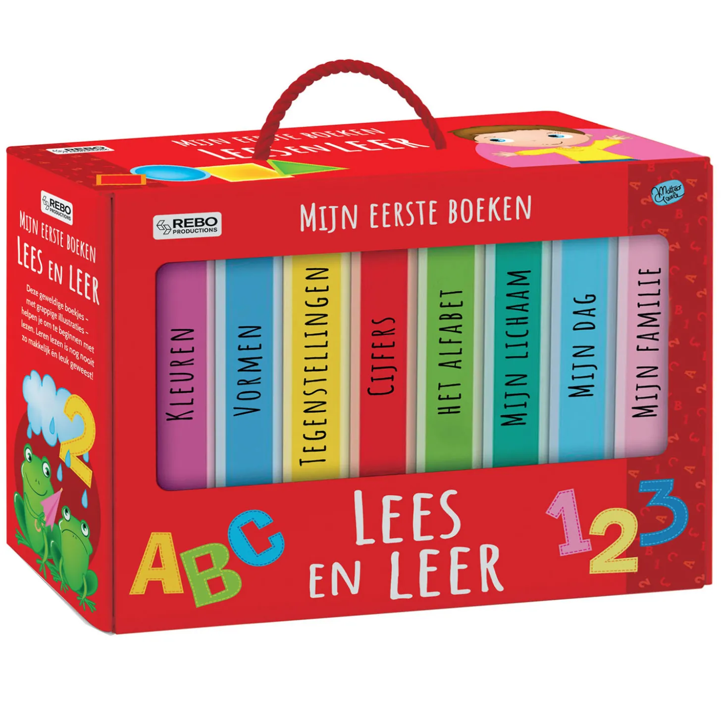 Deze geweldige boekjes – met grappige illustraties – helpen je om te beginnen met lezen. Leren lezen is nog nooit zo makkelijk én leuk geweest! Met deze acht geweldige boekjes ontdek je basisbegrippen aan de hand van kleurige illustraties! Leer kleuren, vormen, de getallen van 1 tot 10, het alfabet van a tot z, tegenstellingen, familieleden, lichaamsdelen en de indeling van de dag.