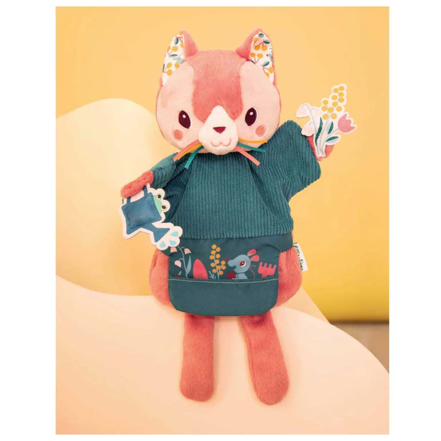 Als je kind groter wordt, kan hij of zij zelf met Jeanne verhalen bedenken of kleine boodschapjes overbrengen, terwijl de motorische vaardigheden spelenderwijs worden geoefend. De knuffel is heel zacht, heerlijk om mee te knuffelen en gemaakt van gerecycled polyester. Met haar grappige snorretjes en kersenpatroon zal onze kleine Jeanne de aandacht van de kleintjes trekken en de groteren aan het lachen maken! Het is altijd een goed idee om een pop te gebruiken om je baby te vermaken en met je peuter te spelen. Hier is een Lilliputiens-speeltje dat je nog lang van pas zal komen!