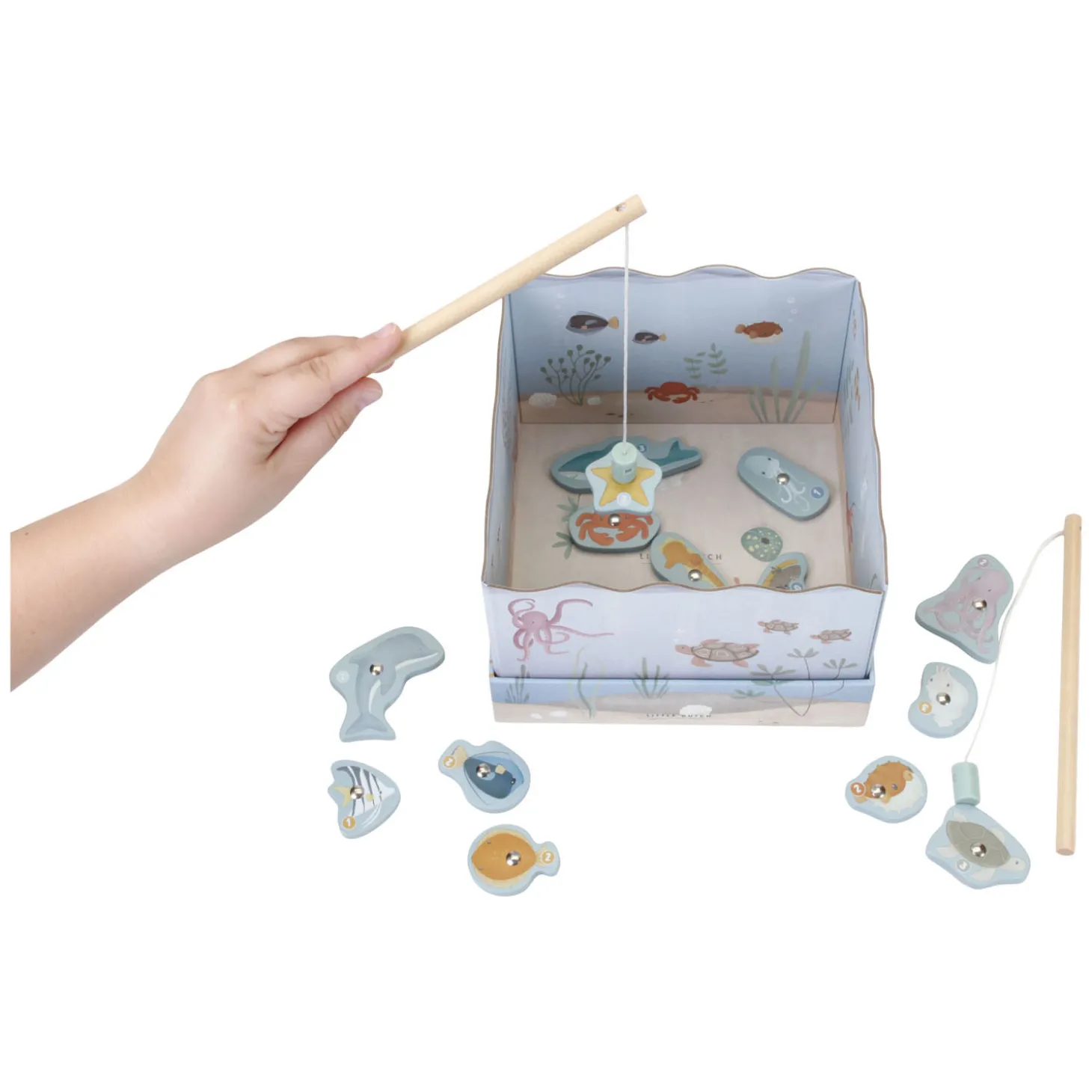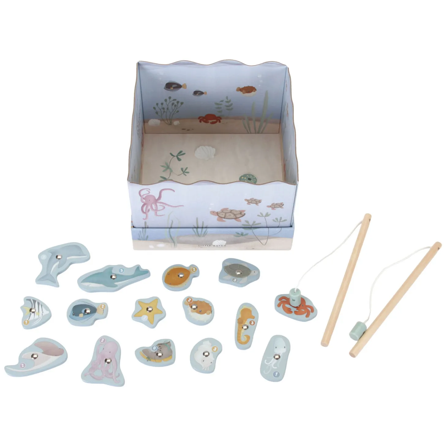 Vang jij de meeste onderwaterdieren met dit leuke hengelspel van Little Dutch? Pas wel op dat je niet de oude schoen aan je hengel krijgt! Dit klassieke hengelspel stimuleert de fijne motoriek en de concentratie van kinderen. Bovendien kan het spelniveau aangepast worden aan de leeftijd van de spelers, zodat zowel jonge als oudere kinderen er veel plezier aan beleven. De onderwaterdieren zijn van hout gemaakt en het aquarium is van karton.