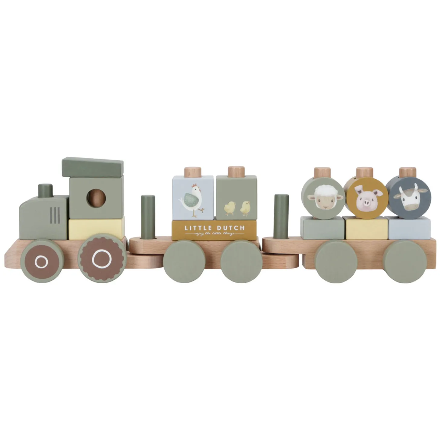 Little Dutch Houten Blokkentrein Tractor Little Farm FSC