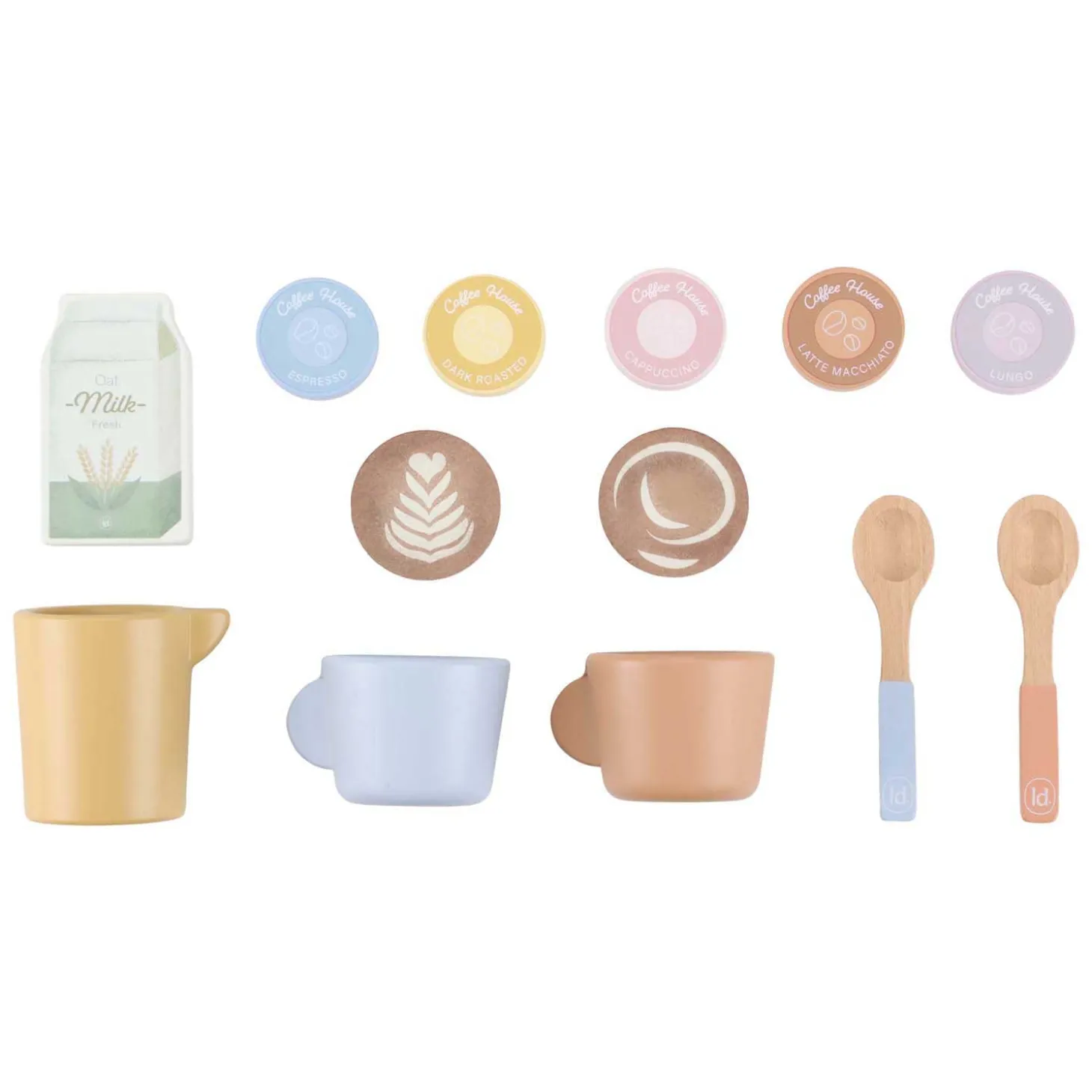 kleine barista’s bonen malen, koffiecapsules plaatsen en hun drankje roeren met