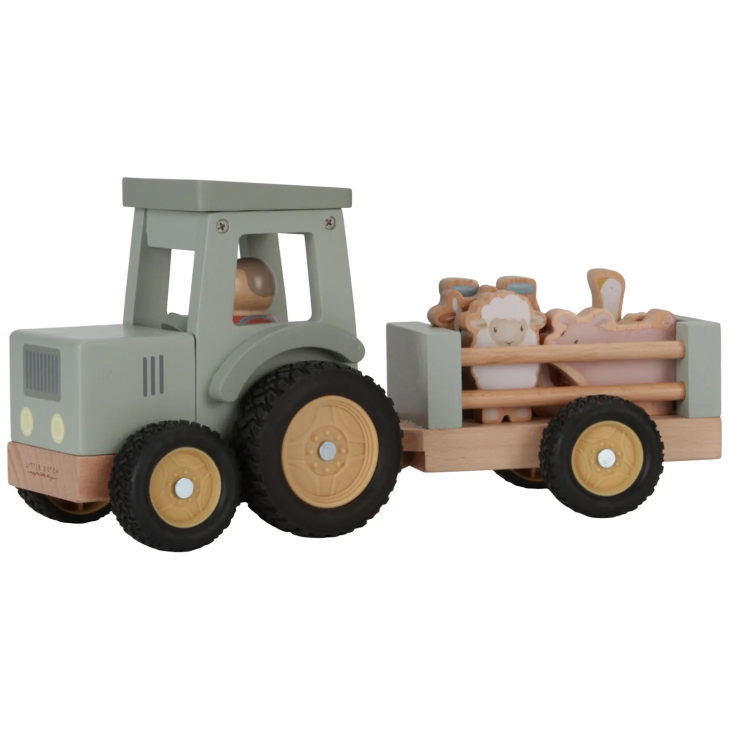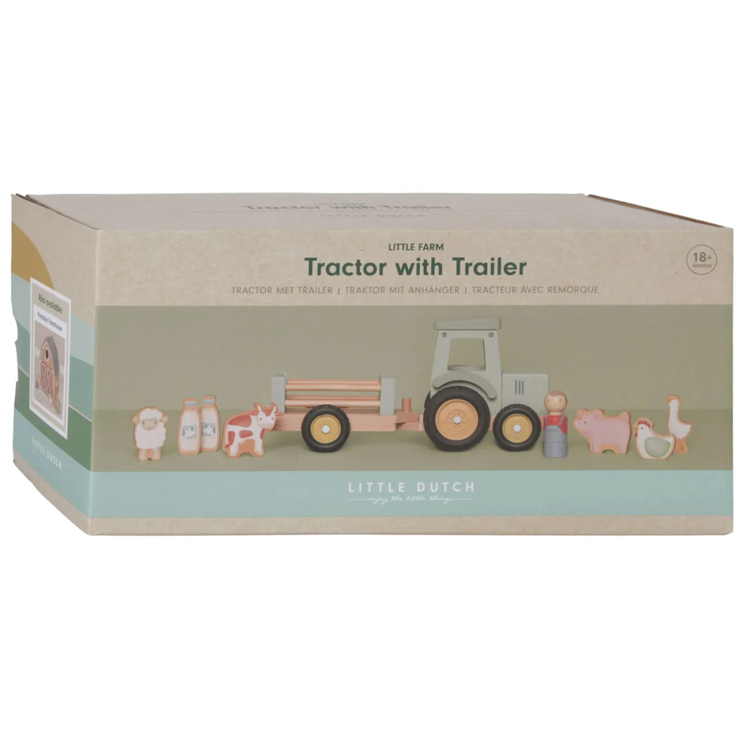 Little Dutch Houten Tractor met Aanhanger en Dieren Speelset
