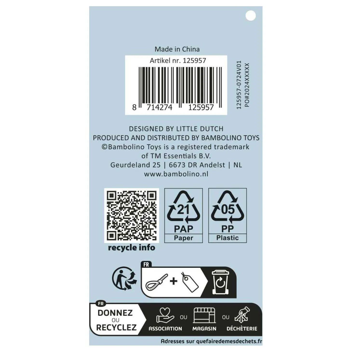 - Waarschuwing: Niet geschikt voor kinderen onder de 3 jaar ivm kleine onderdelen.