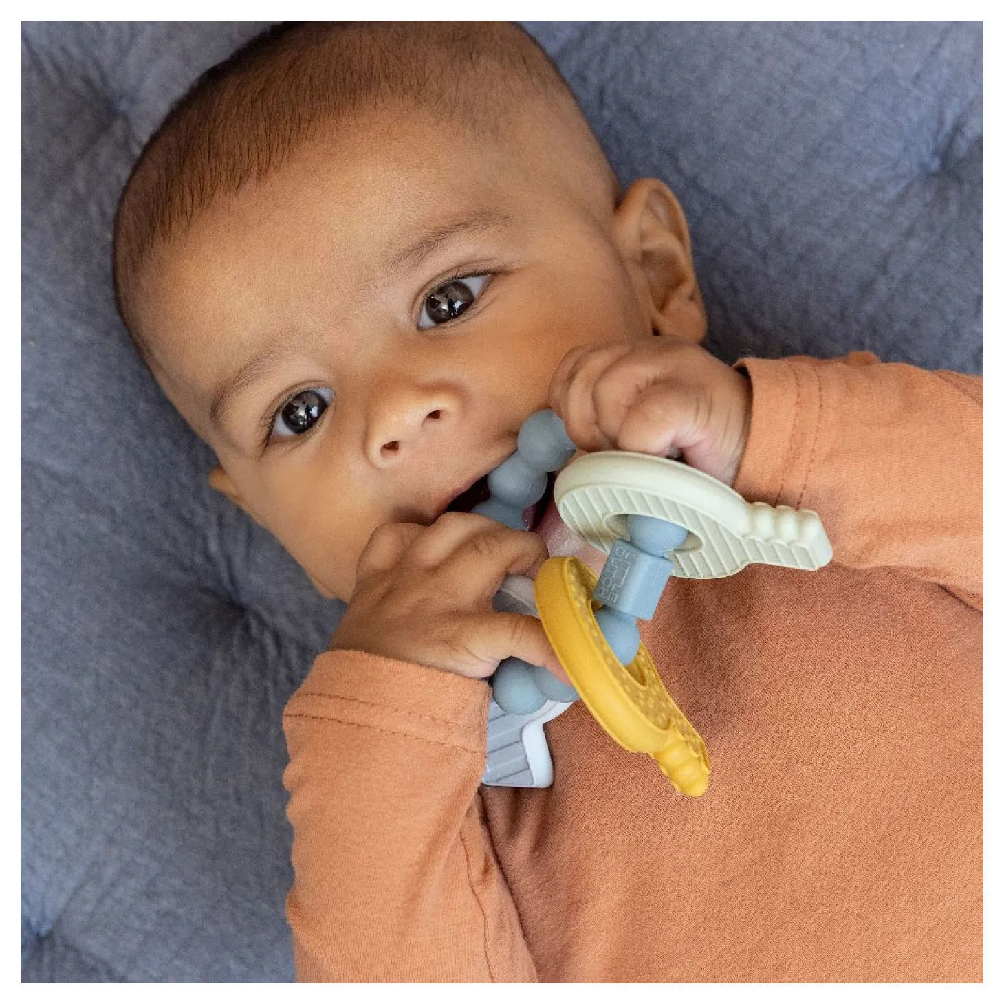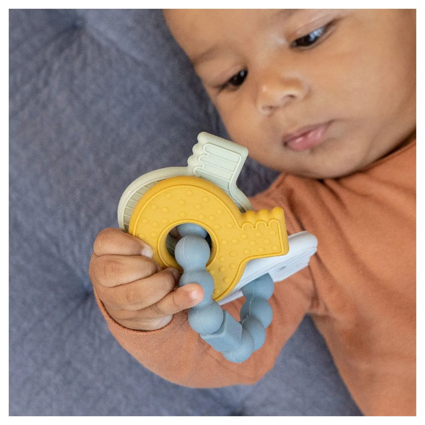 De komst van de eerste tandjes is een mijlpunt voor jouw baby, maar niet altijd even prettig! Om de pijn te verlichten heeft Little Dutch een multifunctionele bijtring ontworpen in de vorm van een sleutelbos. Het is een speeltje maar biedt ook troost en helpt de nieuwe tandjes door te komen. Het bijtspeeltje heeft verschillende texturen waardoor jouw baby genoeg te ontdekken heeft. Speciaal ontworpen dat het makkelijk vast te pakken is voor baby handjes! In zachte tinten blauw, zand en groen. Wordt geleverd op een blisterkaart. Geschikt voor kinderen vanaf 4 maanden.