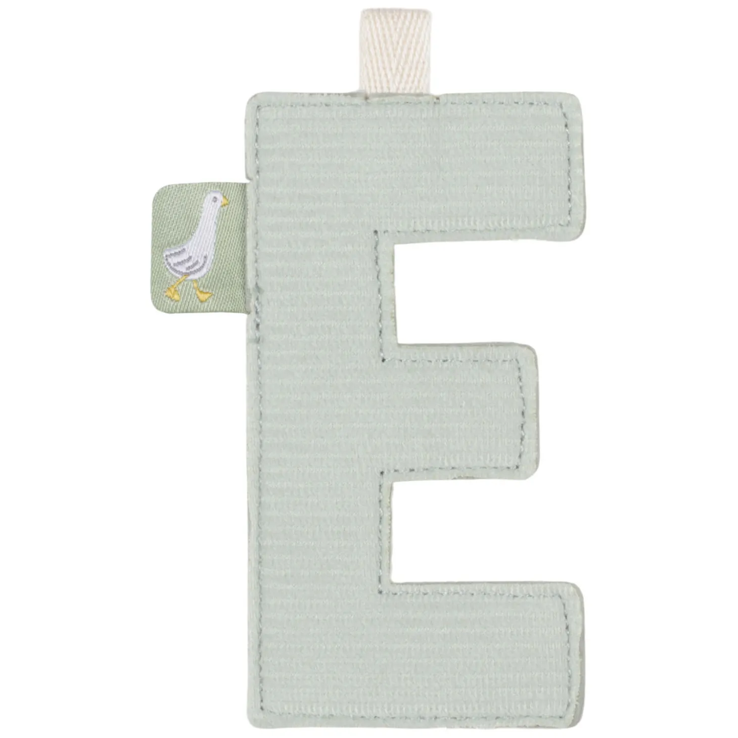 Letter E. Maak je eigen slinger voor je kindje of geef het cadeau. Het is gemaakt van zacht materiaal en is de perfecte decoratie voor de kinderkamer. Er zijn letters (A-Z), cijfers (0-10) en schattige ornamenten en vlaggetjes in bijpassende kleuren waarmee je je eigen slinger kunt maken. Vergeet niet om het bijpassende touw te bestellen waaraan je de ornamenten kunt hangen.