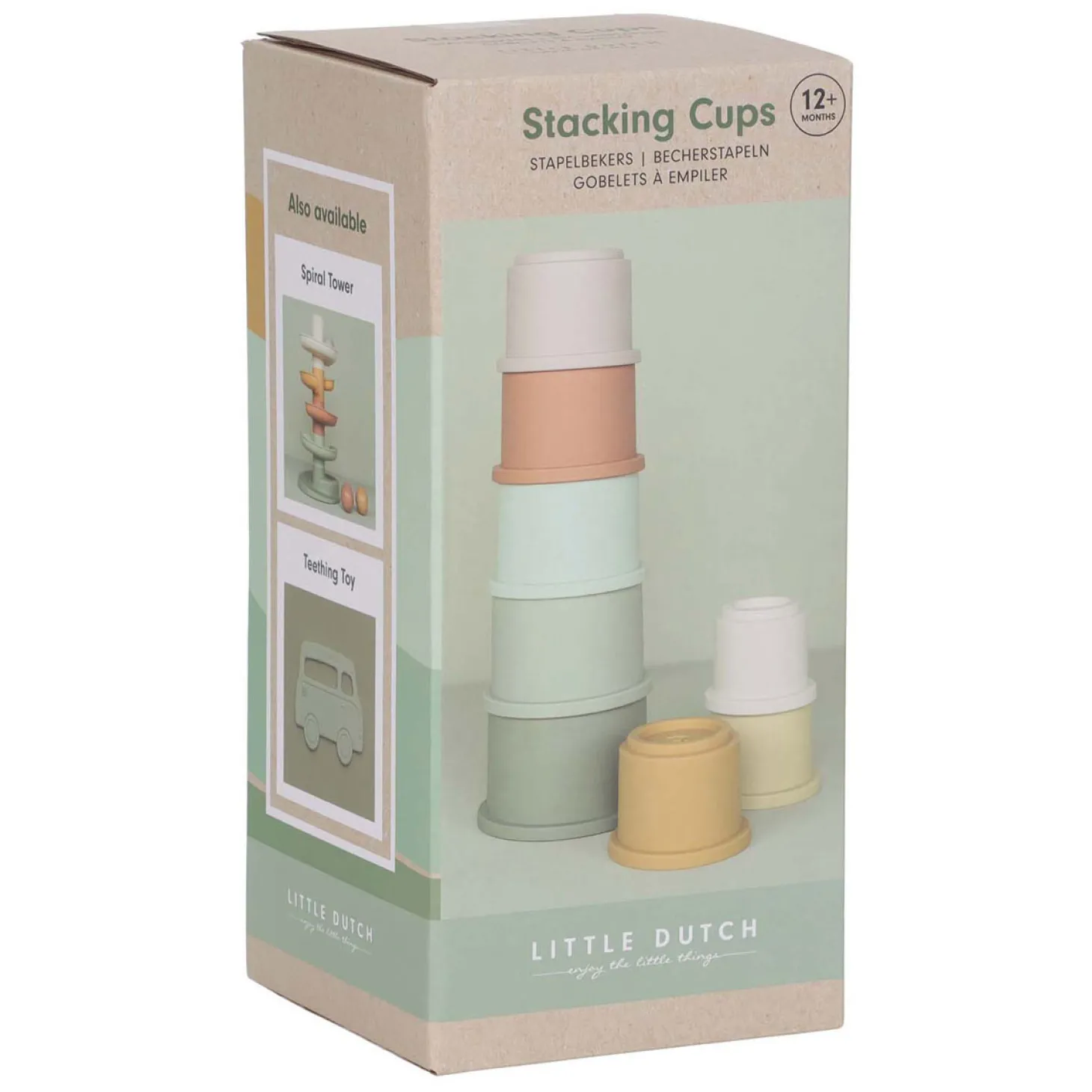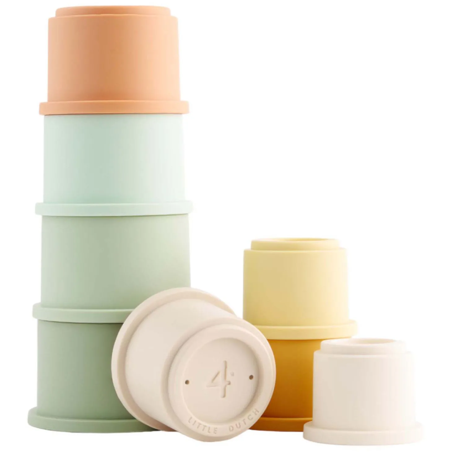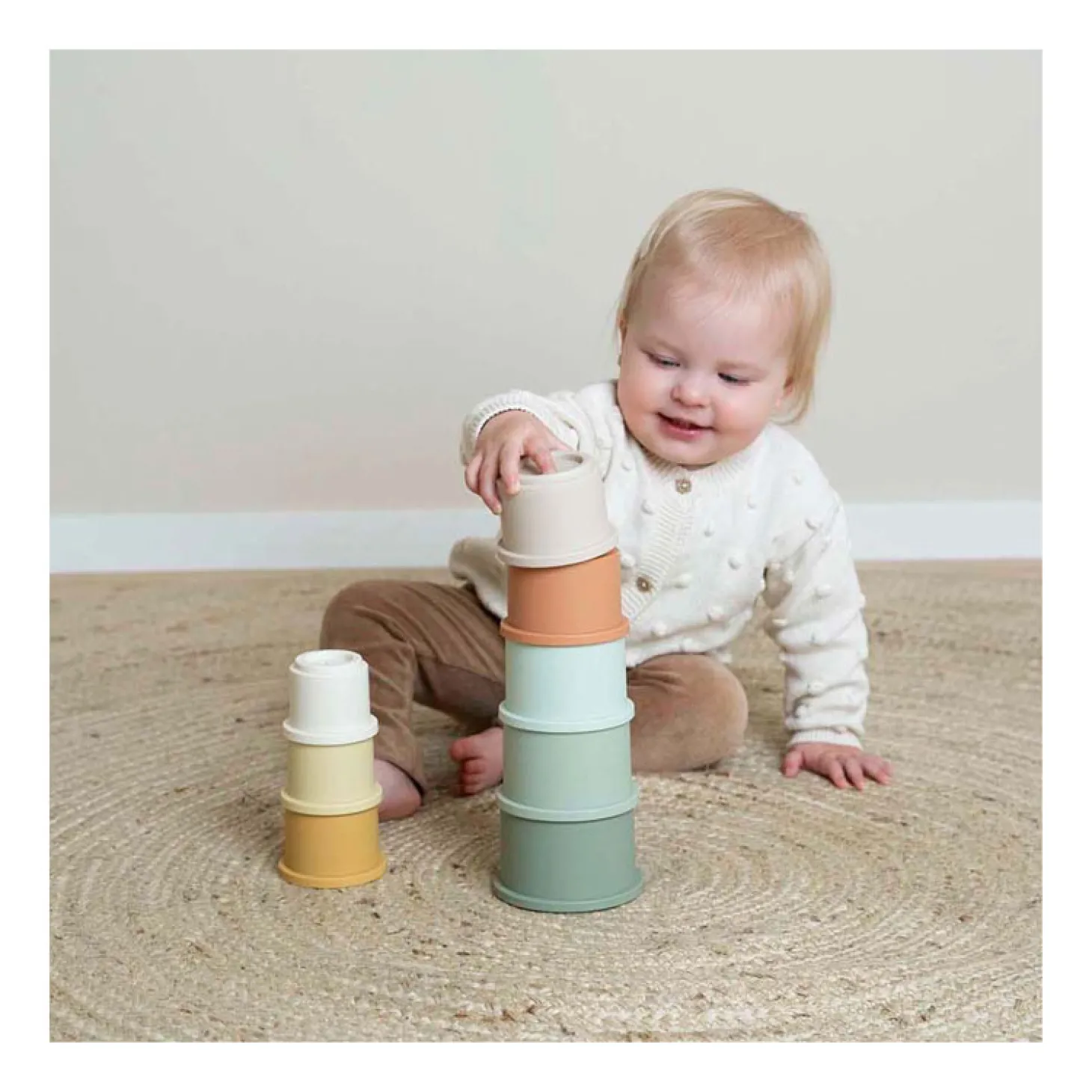 De toren bestaat uit 8 stapelbekers, variërend in diameter tussen 6 en 9,5 cm en de toren is in totaal 43 cm hoog als je alle bekers op elkaar zet. Geschikt voor kinderen vanaf 12 maanden.