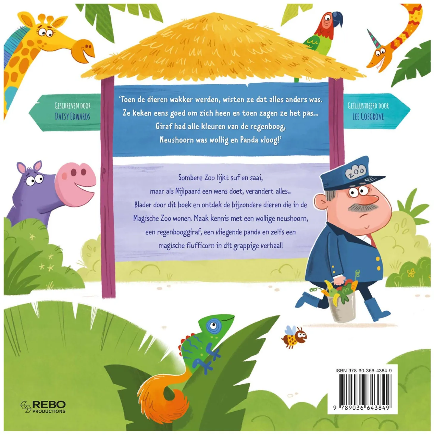 Toen de dieren wakker werden, wisten ze dat alles anders was. Ze keken eens goed om zich heen en toen zagen ze het pas… Giraf had alle kleuren van de regenboog, Neushoorn was wollig en Panda vloog! Sombere Zoo lijkt suf en saai, maar als Nijlpaard een wens doet, verandert alles… Blader door dit boek en ontdek de bijzondere dieren die in de Magische Zoo wonen. Maak kennis met een wollige neushoorn, een regenbooggiraf, een vliegende panda en zelfs een magische flufficorn in dit grappige verhaal!