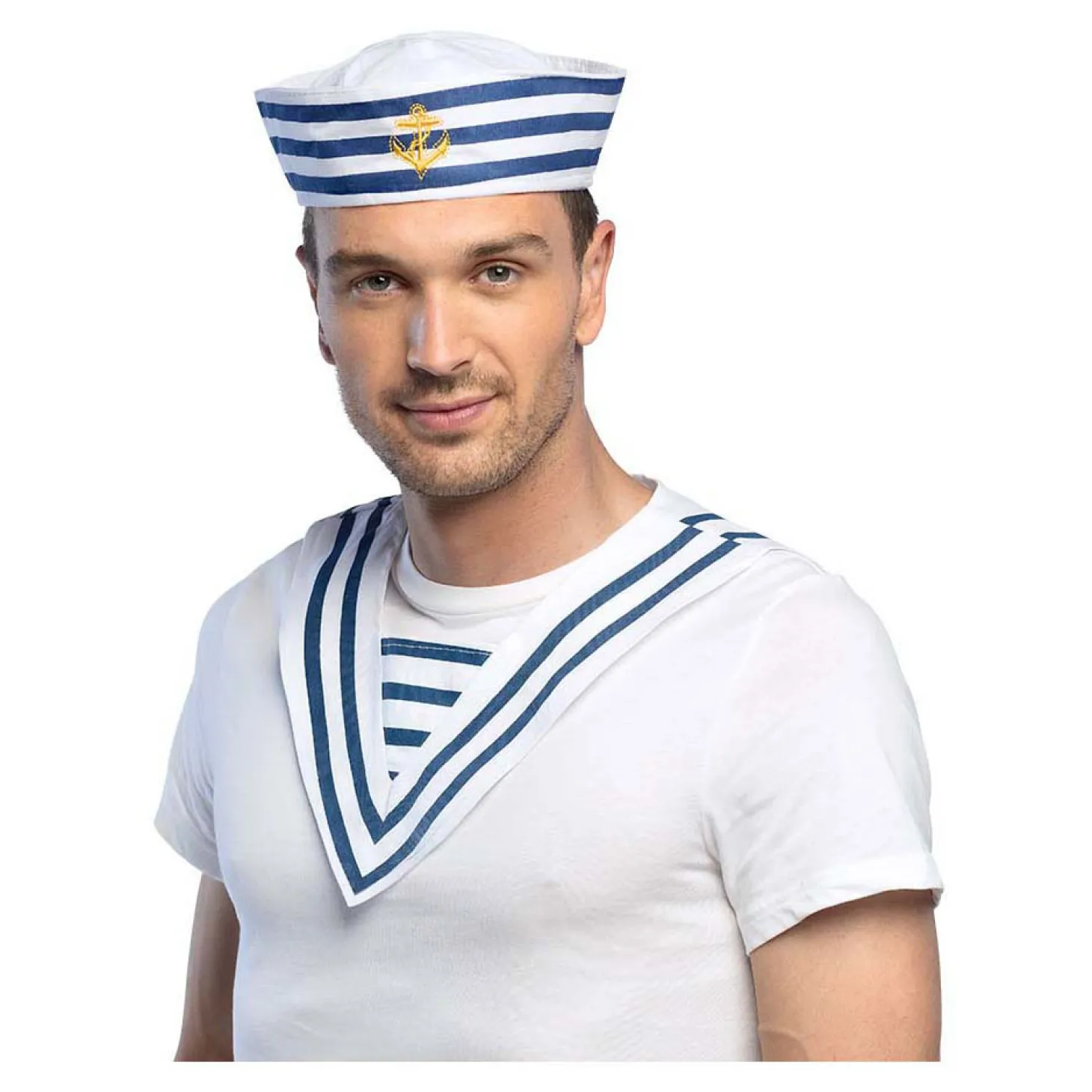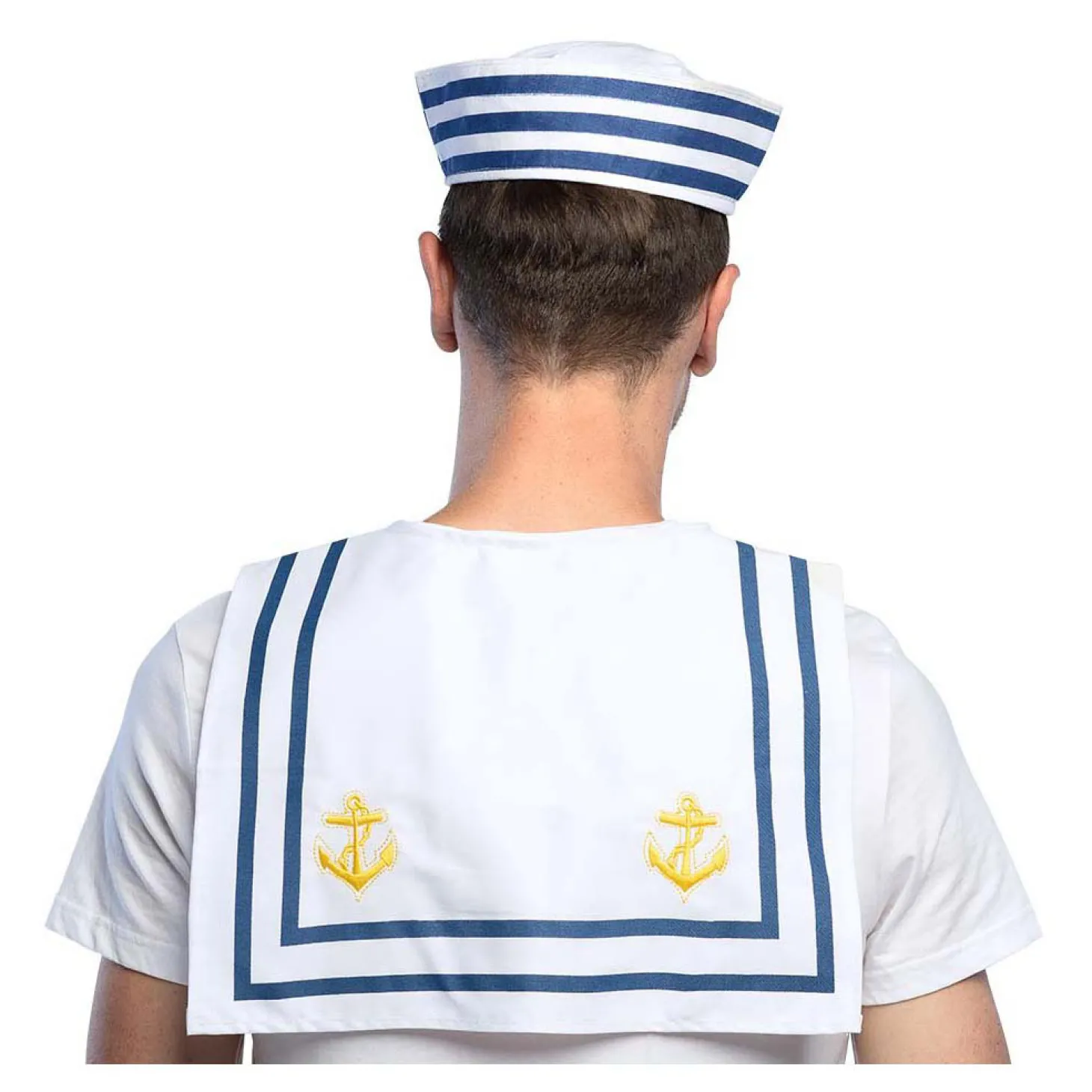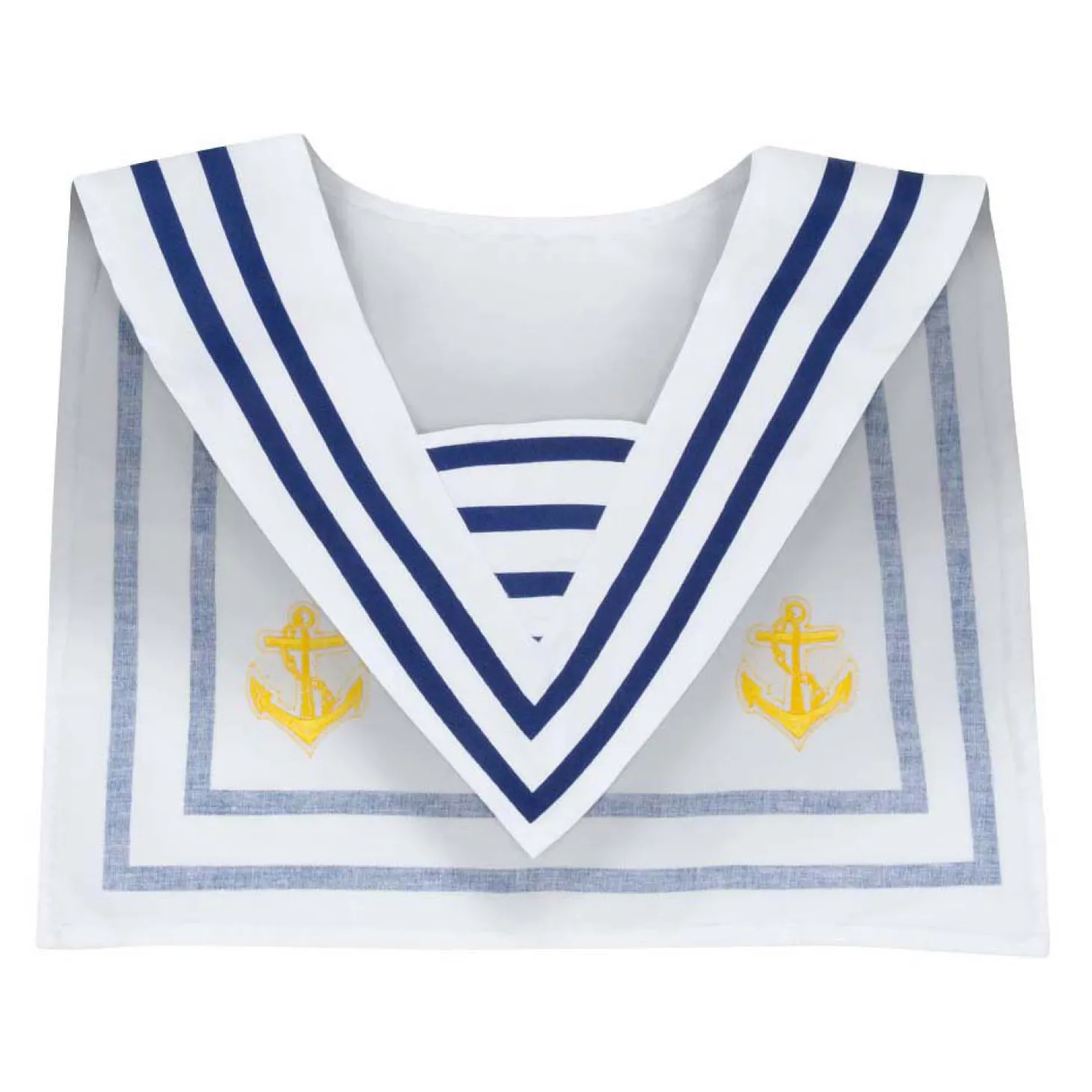 •Witte matrozenkraag met blauwe strepen en goudkleurig ankerborduursel