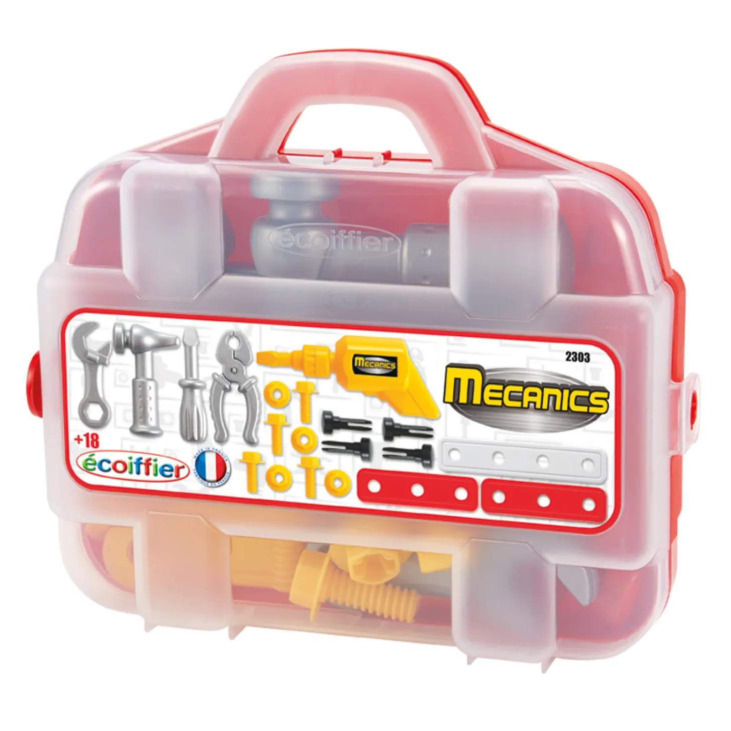 Met de Mecanics gereedschapskoffer is een klusje zo geklaard. In de stevige gereedschapskoffer zitten 20 kunststoffen onderdelen waaronder een moersleutel, hamer, boor, nijptang, schroevendraaier, bouten, schroeven en moeren die perfect zijn voor kleine kinderhanden. Klussen wordt zo een kunstje of zoals Buurman & Buurman zouden zeggen A Je To!