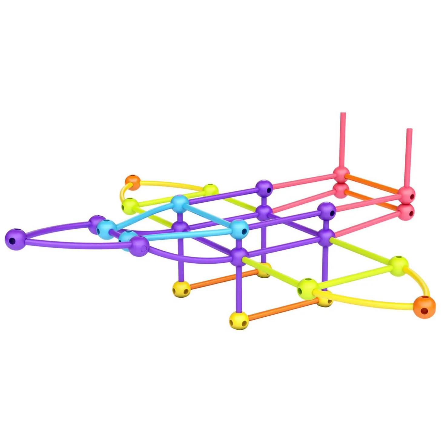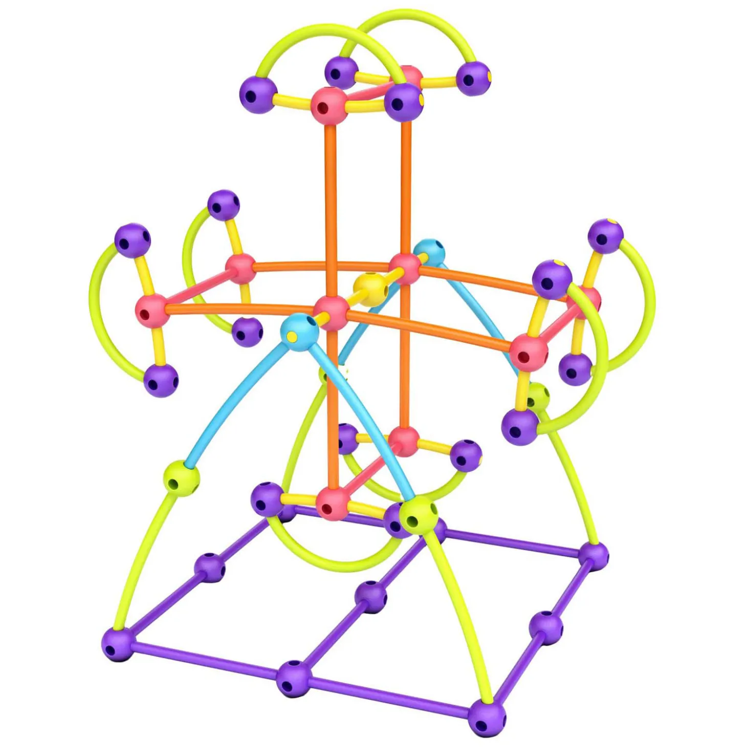 Hoewel de onderdelen heel eenvoudig zijn – flexibele stokjes die aan elkaar kunnen worden gekoppeld met knikkers met gaten – kunnen kinderen urenlang bezig zijn met het bouwen van complexe constructies. Tegelijkertijd kunnen kinderen hun oog-handcoördinatie, ruimtelijke planning en handvaardigheid verbeteren.
