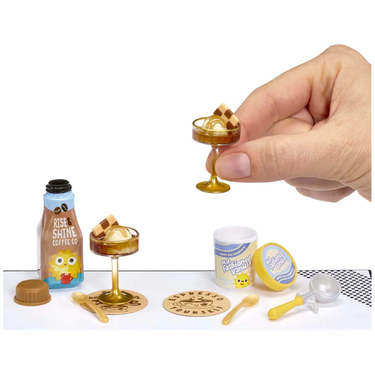 En er valt nog meer plezier te beleven! Niet alleen je voltooide miniatuur is leuk om te verzamelen. Van miniaturen van een ijsschep en een lunchbox tot diverse miniatuuronderzetters met thema, er zijn heel veel unieke replica-ingrediënten, -verpakkingen en -keukenaccessoires in serie 5 van Make It Mini Cafe™ om je eigen miniverzamelvoorwerpen te maken en verzamelen.
