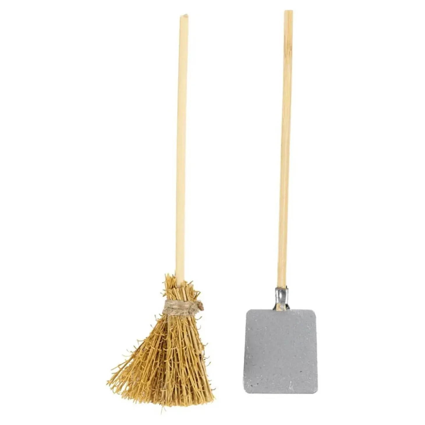 Minibezem en -schep voor creatieve miniatuurprojecten.De emmer en bezem zijn praktische hulpmiddelen die we allemaal kennen en nu kun je ze in een miniversie kopen. Onze minischep en bezem zijn perfect voor wie van kleine details houdt. Beide gereedschappen hebben een houten handgreep en zijn voorzien van fijne details waardoor ze er echt uitzien