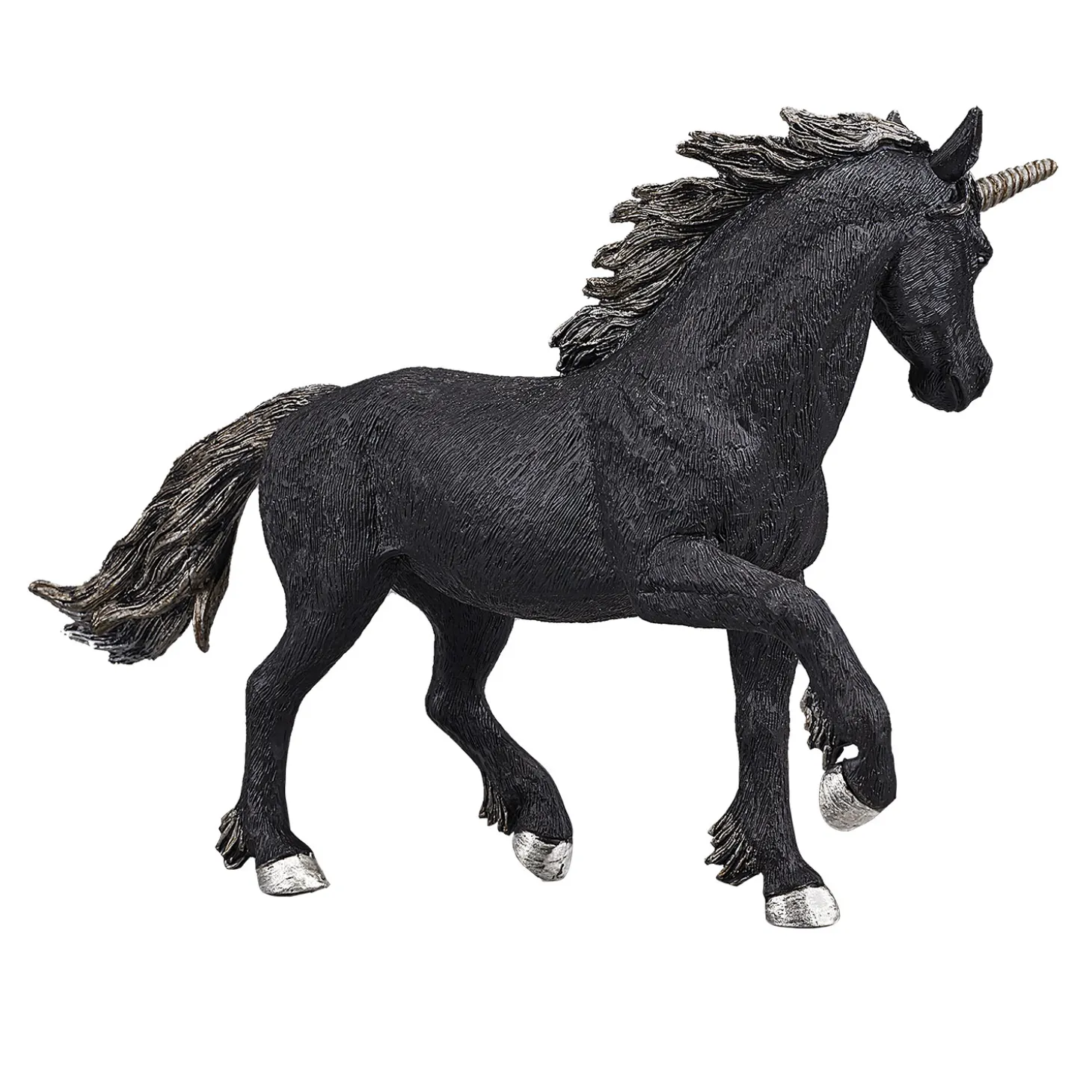 Dit model is van een Zwarte Eenhoorn. Afmetingen: 19 x 7,5 x 12 centimeter groot.