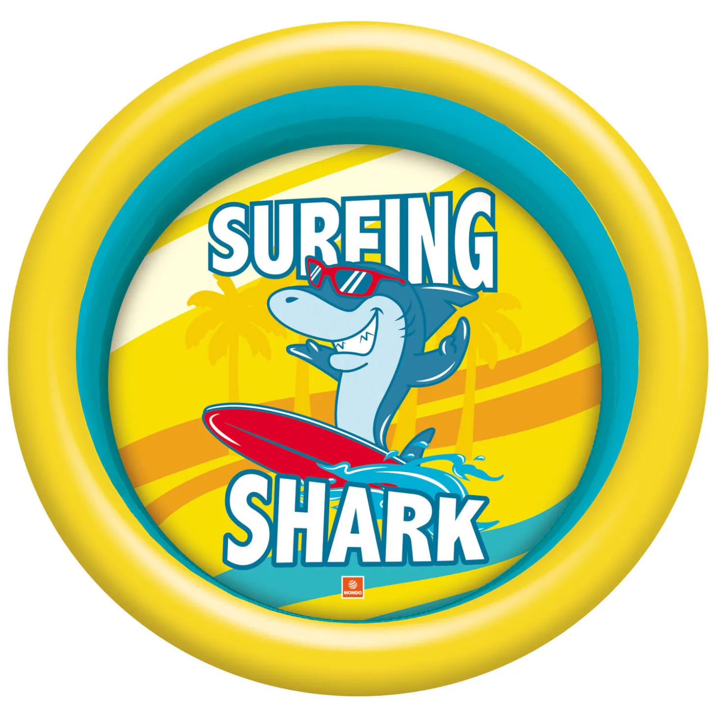 Lekker veel spetterplezier deze zomer met dit opblaasbare zwembad in de tuin! Het zwembad met twee ringen heeft een surfende haai op de bodem, wat het helemaal afmaakt! Afmeting: diameter van 100 centimeter.