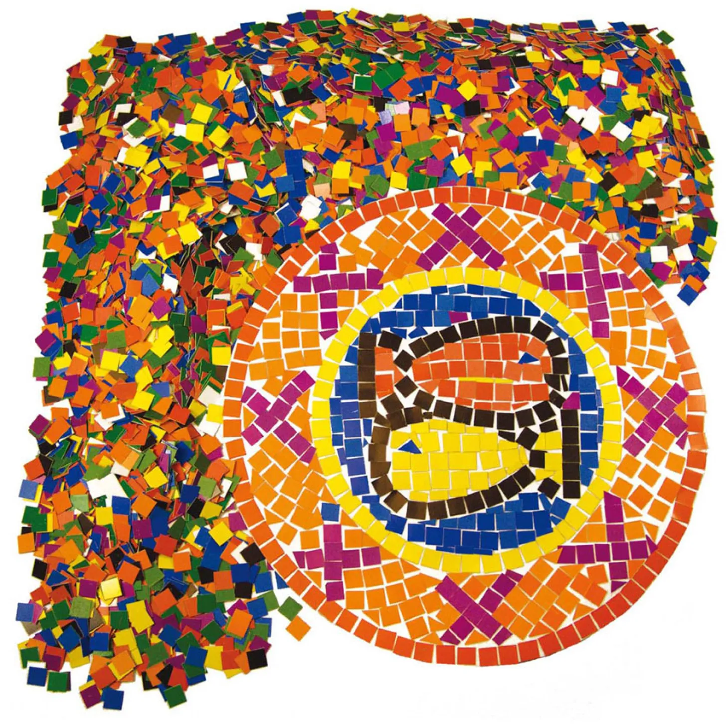 Creëer patronen, versier doosjes en maak fantastische vormen. De mozaïekvierkanten zijn dubbelzijdig bedrukt met heldere kleuren. Set van Roylco bestaat uit 10.000 stuks van 1 cm groot.