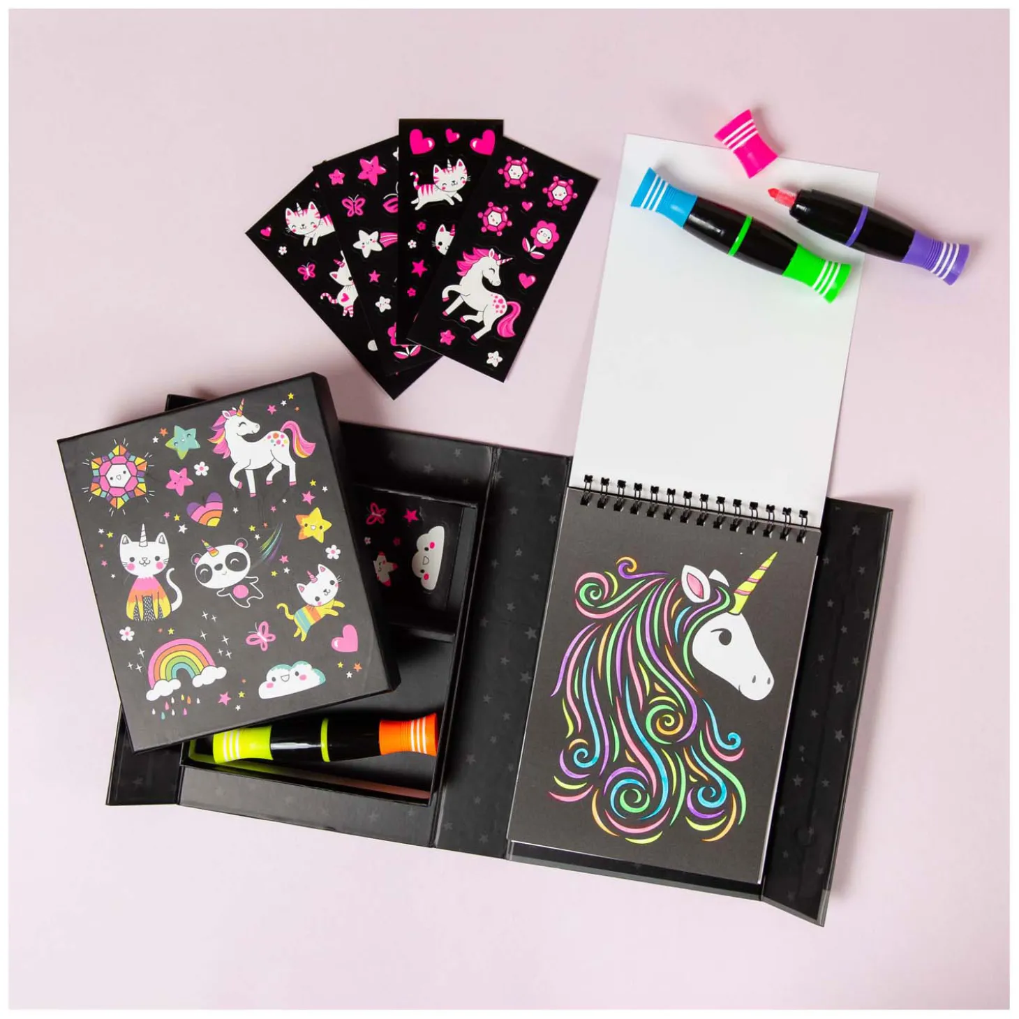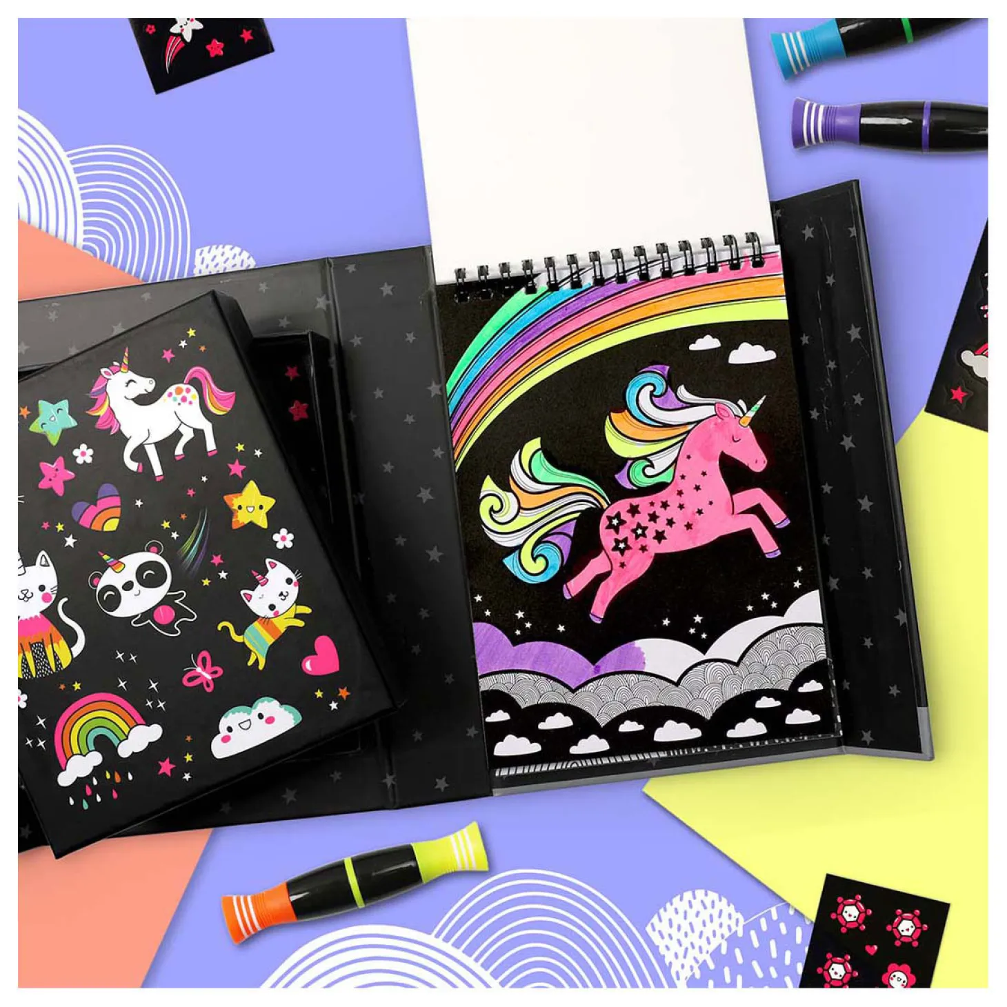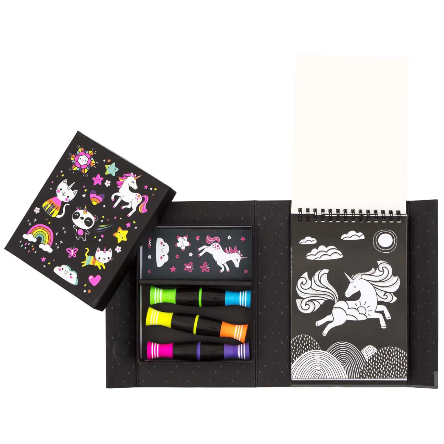 • Neon kleuren: De set bevat levendige neonstiften die creaties laten oplichten en een magische glans geven.
