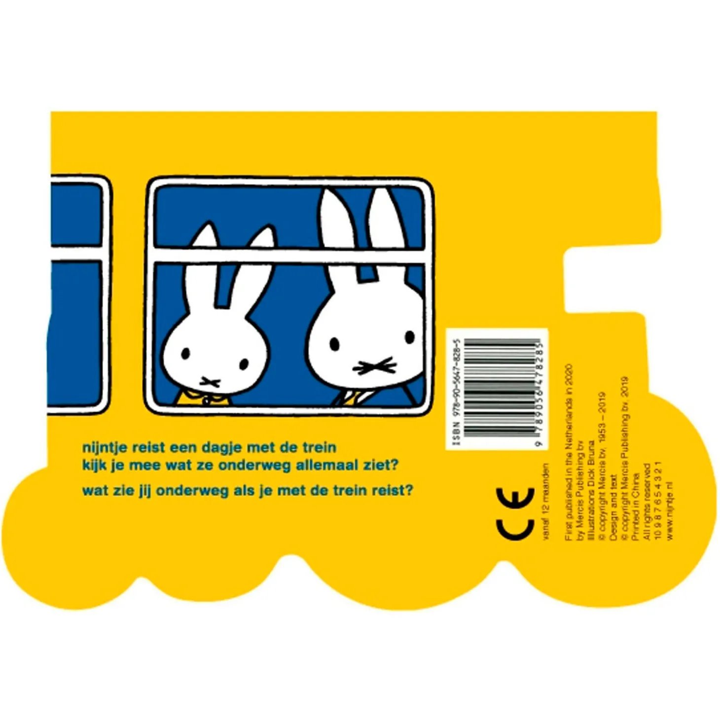 Een stevig kartonboek in de vorm van een trein.