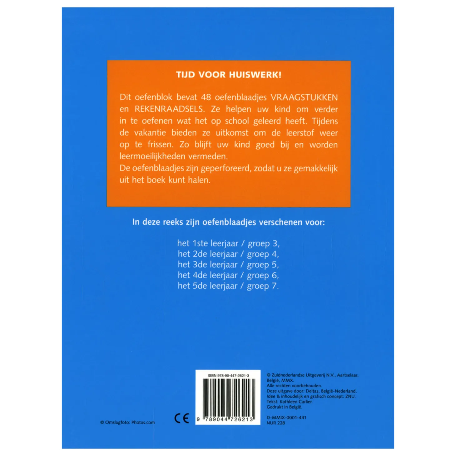 Dit oefenblok bevat 48 oefenblaadjes bewerkingen en vraagstukken en rekenraadsels. Ze helpen uw kind om verder in te oefenen wat het op school geleerd heeft. Tijdens de vakantie bieden ze uitkomst om de leerstof weer op te frissen. Zo blijft uw kind goed bij en worden leermoeilijkheden vermeden. De oefenblaadjes zijn geperforeerd, zodat u ze gemakkelijk uit het boek kunt halen. Geschikt voor kinderen van 9-10 jaar. Inhoud: 96 pagina’s. Paperback uitvoering.