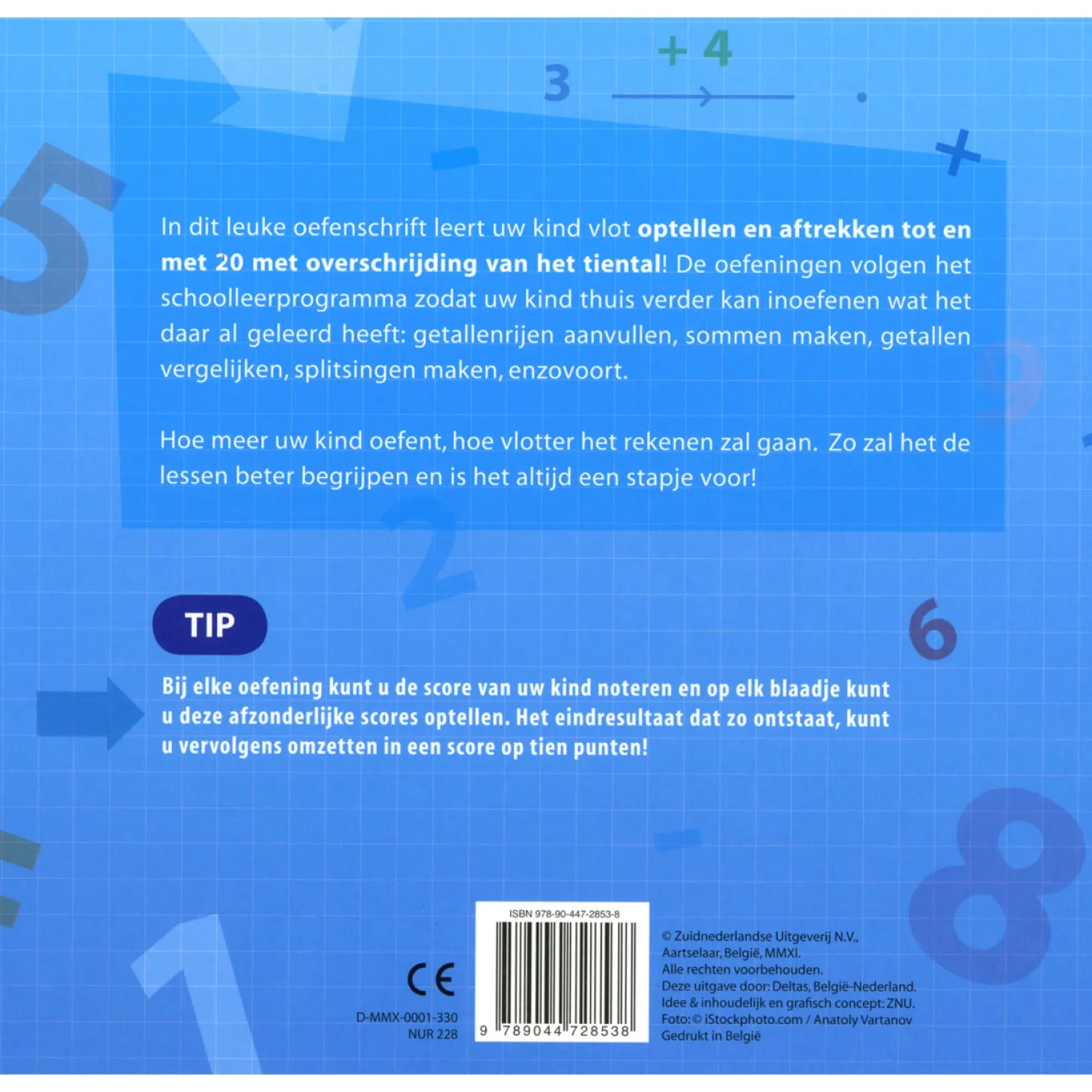 In dit leuke oefenschrift leert uw kind vlot optellen en aftrekken tot en met 20 zonder overschrijding van het tiental! De oefeningen volgen het schoolleerprogramma zodat uw kind thuis verder kan inoefenen wat het daar al geleerd heeft: getallenrijen aanvullen, sommen maken, getallen vergelijken, splitsingen maken, enzovoort. Inhoud: 48 pagina’s. Uitvoering: ingenaaid