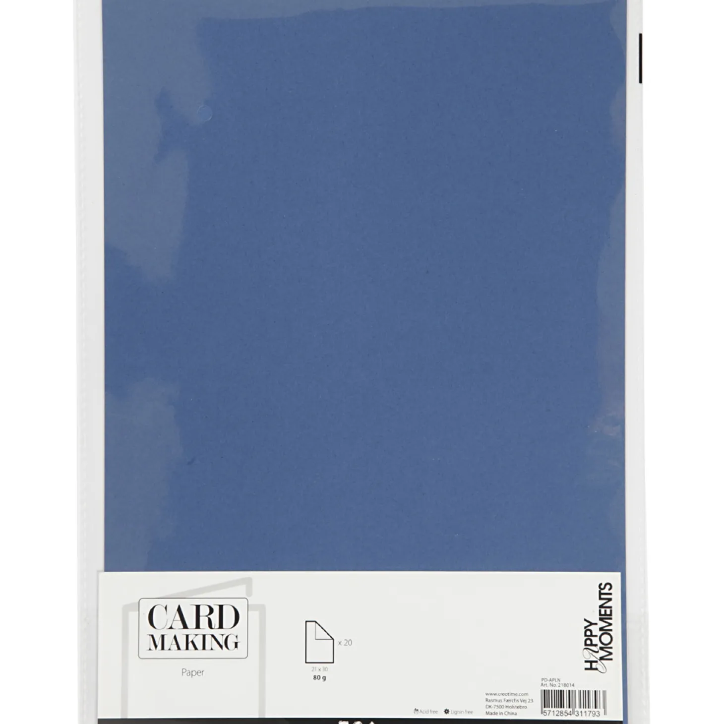 Pak met hoge kwaliteit blauw knutselpapier. Het 110 grams A4-papier is ideaal voor het maken van kaarten of andere stevige knutselwerken. In de verpakking zitten twintig vellen.