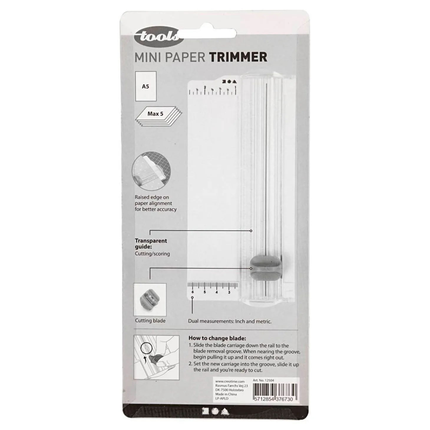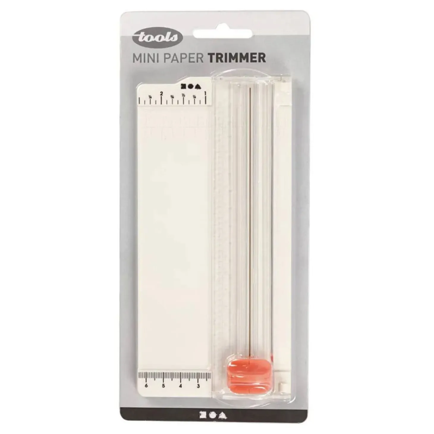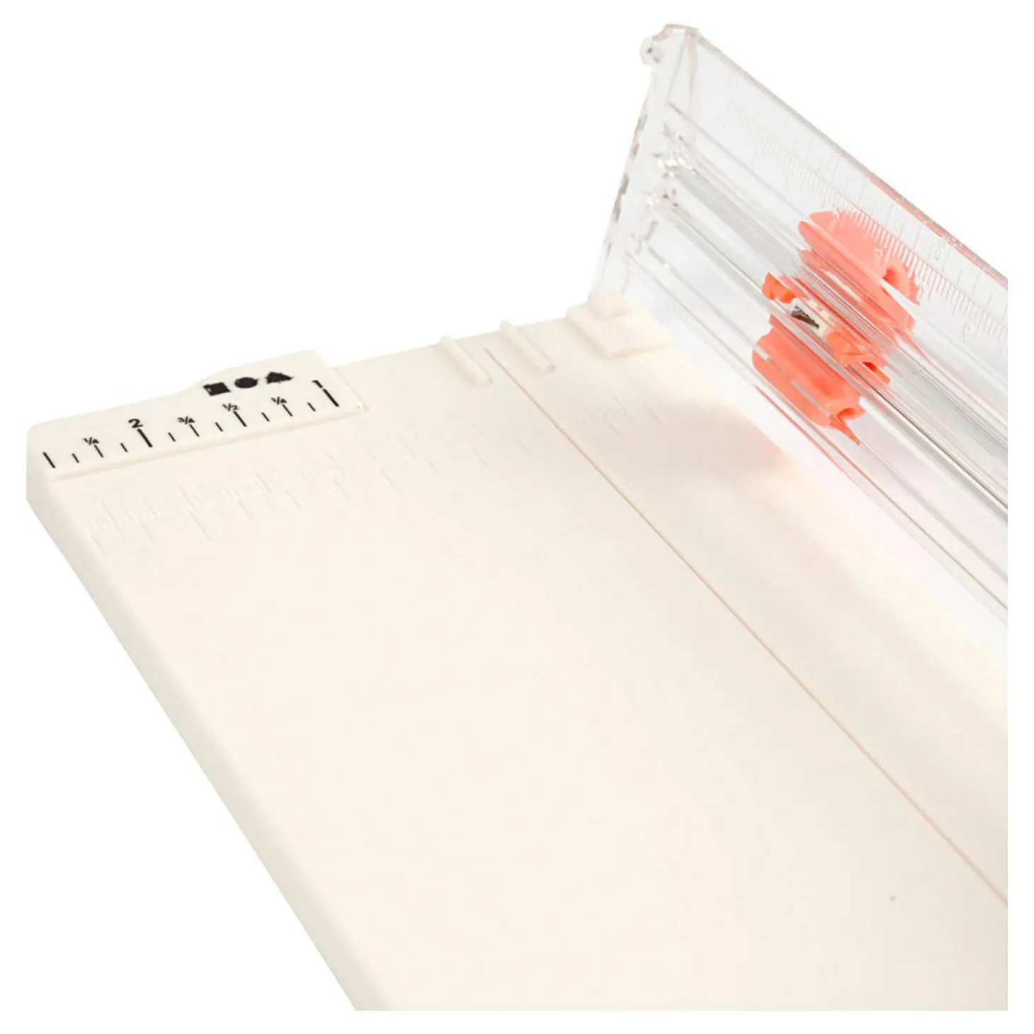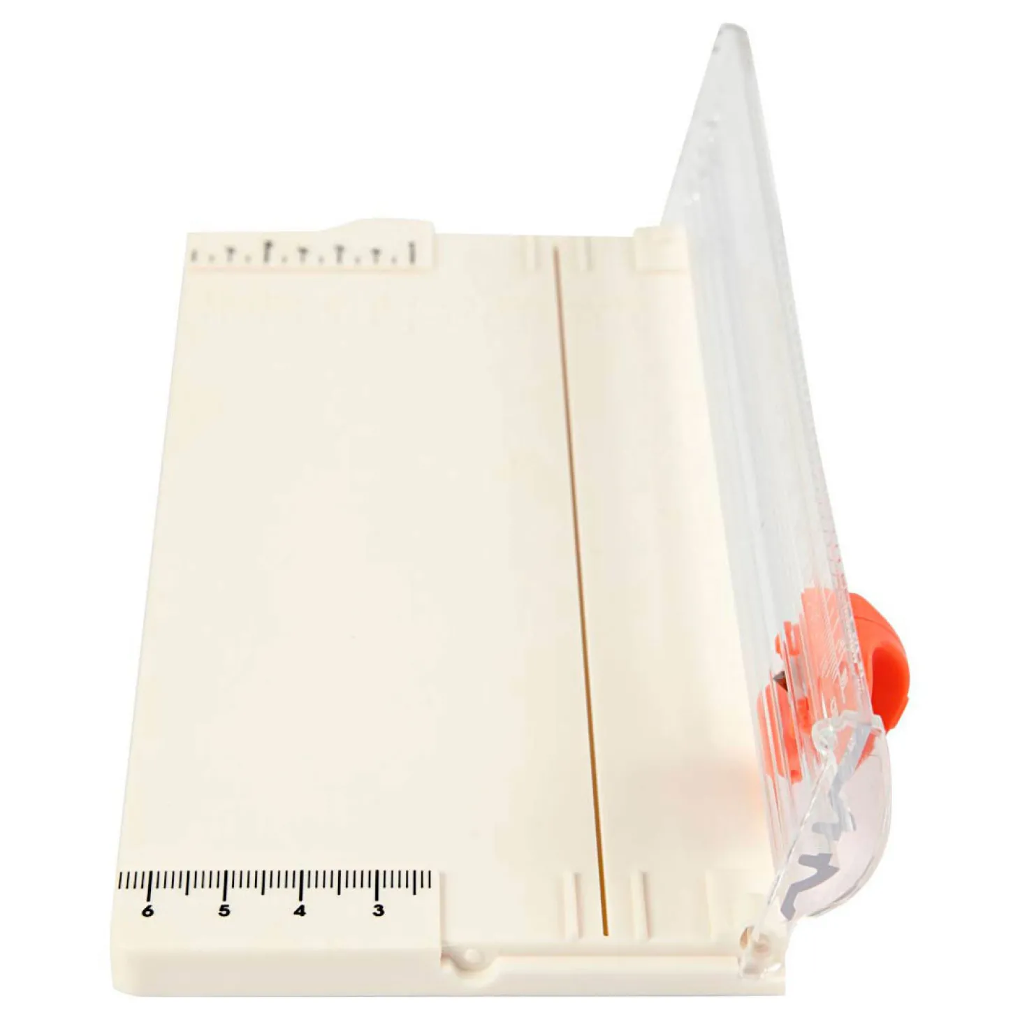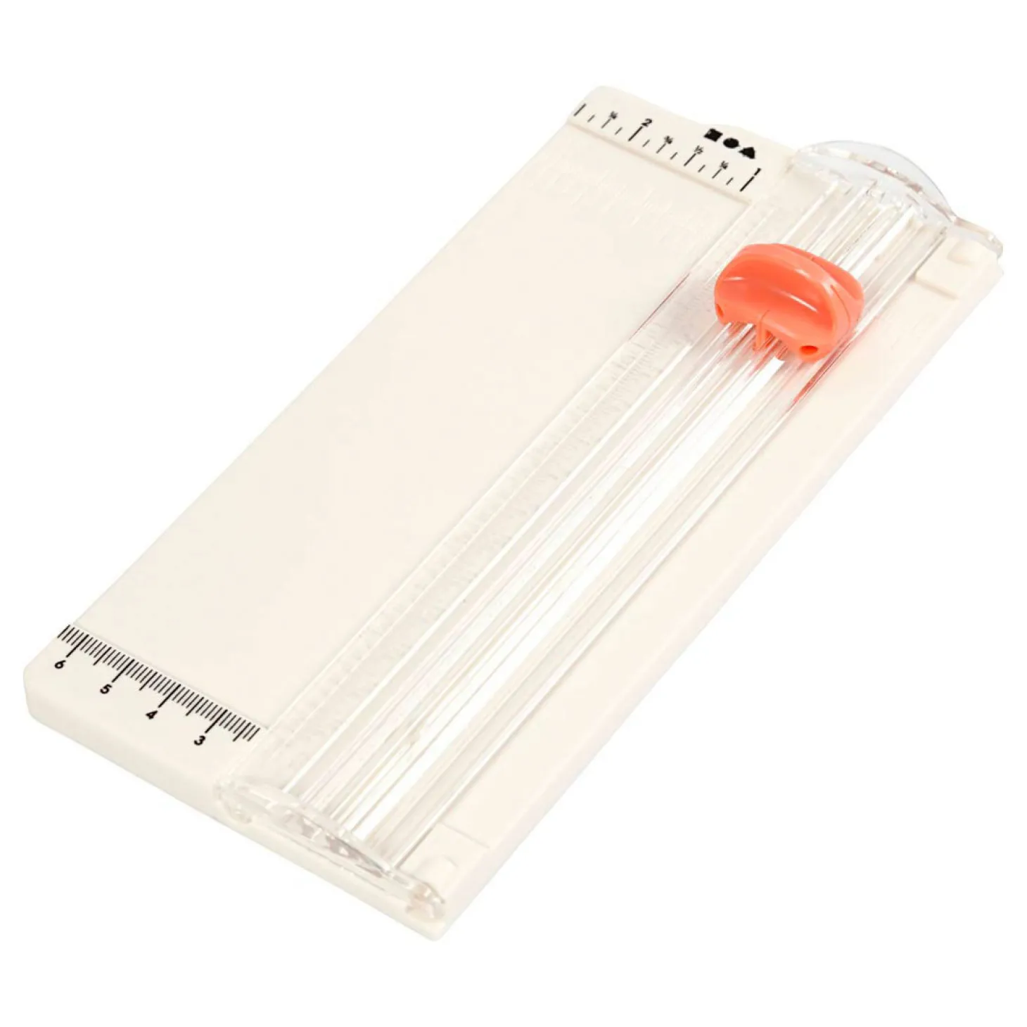 Draagbare snijmachine met kunststof oppervlak, gedrukte rasterlijnen en inklapbare liniaal. Kan tot 5 vellen 80grams papier tegelijkertijd snijden.