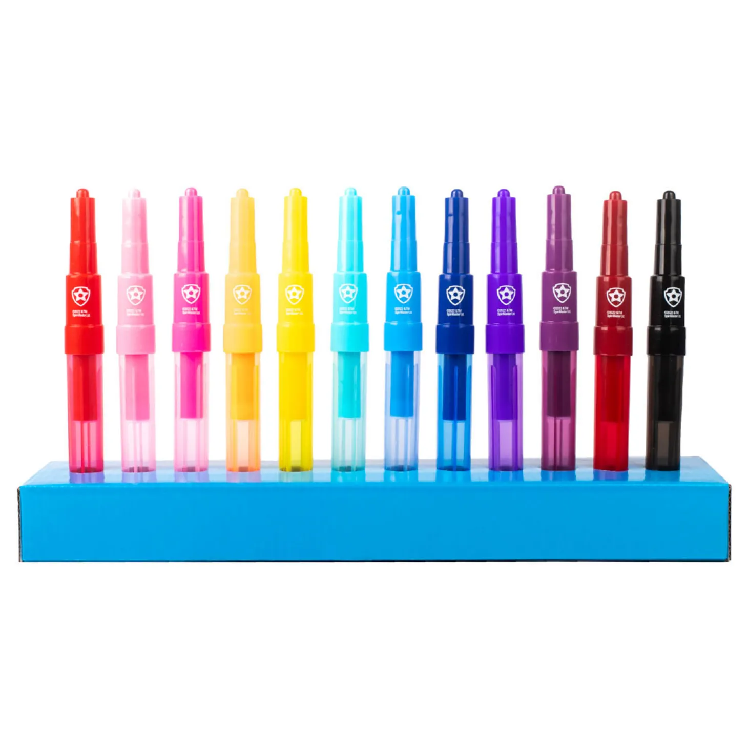 • 12 blaaspennen in de tinten rood, geel, blauw, paars en zwart
