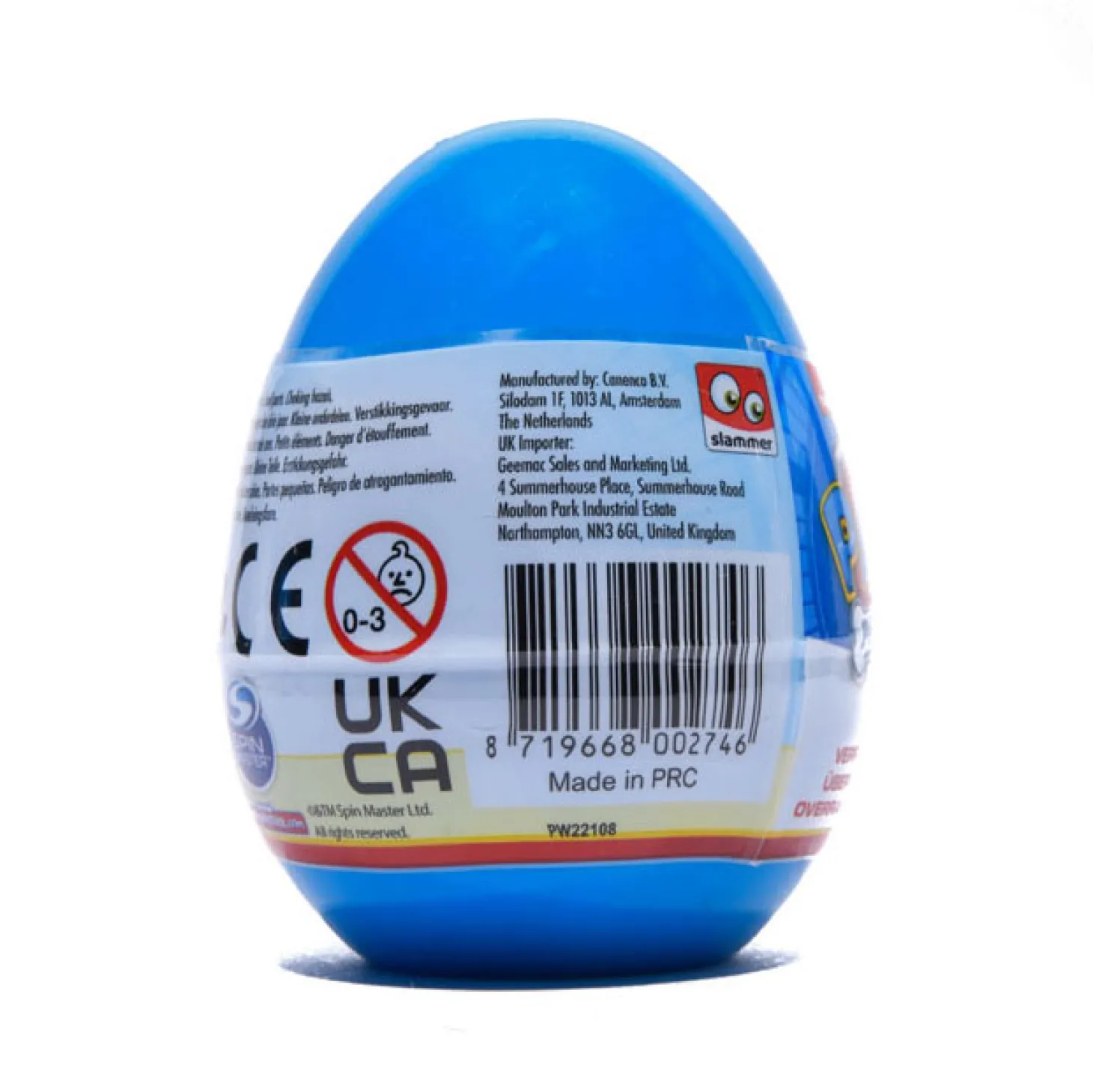 Het verrassingsei is 7 x 5 centimeter groot.Prijs per stuk, verschillende uitvoeringen/kleuren worden door elkaar geleverd.