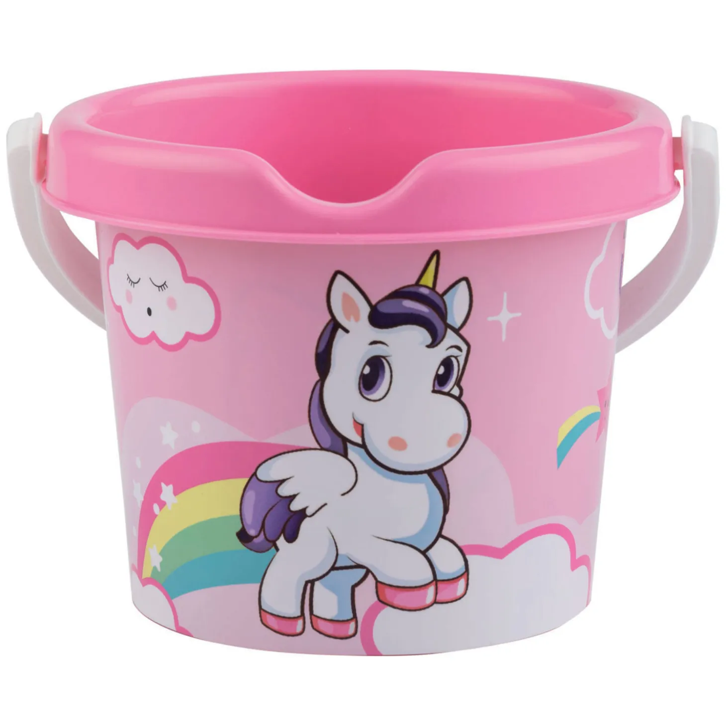 Deze Eenhoorn Peuteremmer is ideaal voor op het strand, zwembad of in de tuin. Verzamel al je schatten erin! De roze peuteremmer heeft een vrolijke afbeelding van een unicorn, wolkjes en een mooie regenboog. Gemaakt van stevig kunststof.