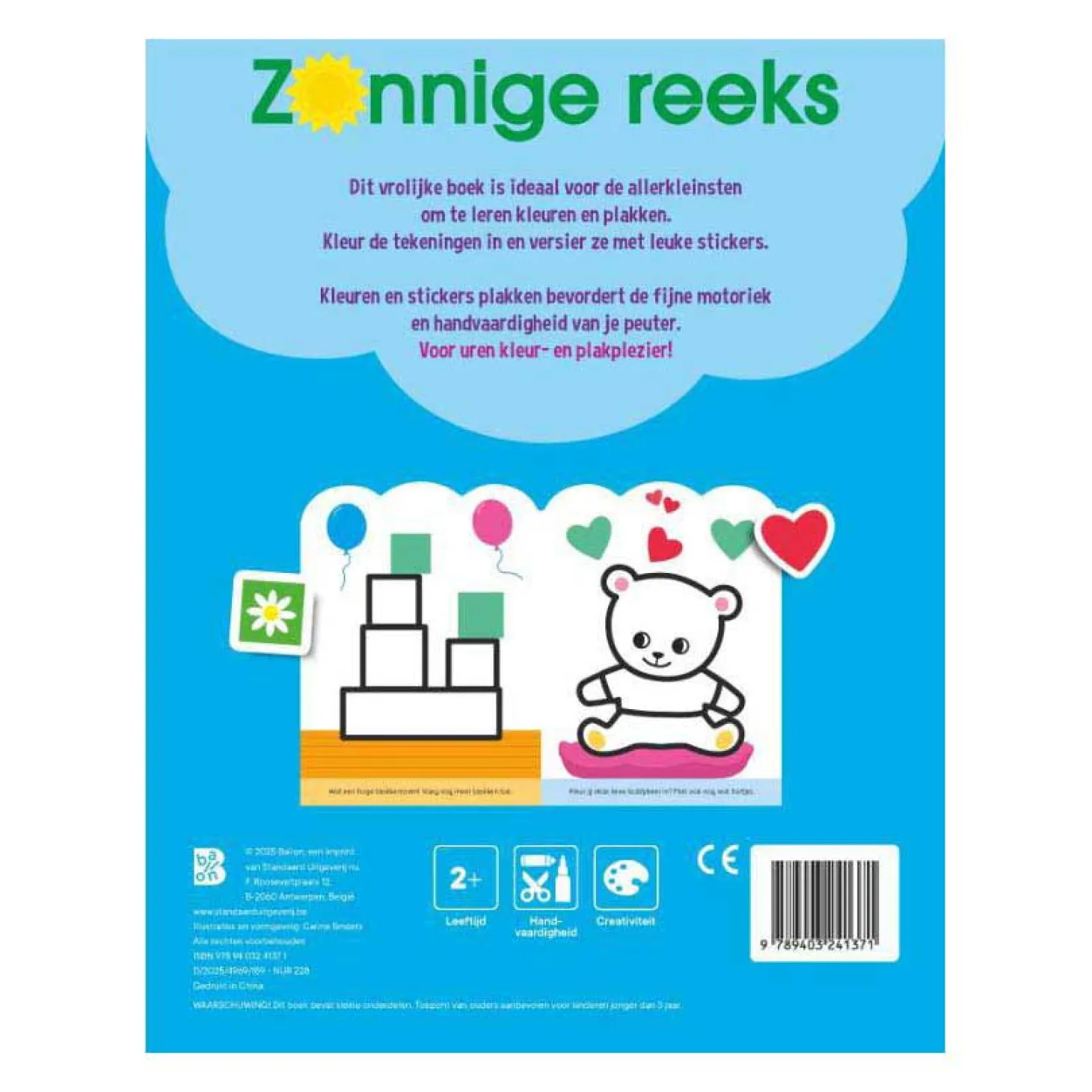 Dit vrolijke boek is ideaal voor de allerkleinsten om te leren kleuren en plakken. Kleur de tekeningen in en versier ze met leuke stickers. Kleuren en stickers plakken bevordert de fijne motoriek en handvaardigheid van je peuter. Voor uren kleur- en plakplezier!