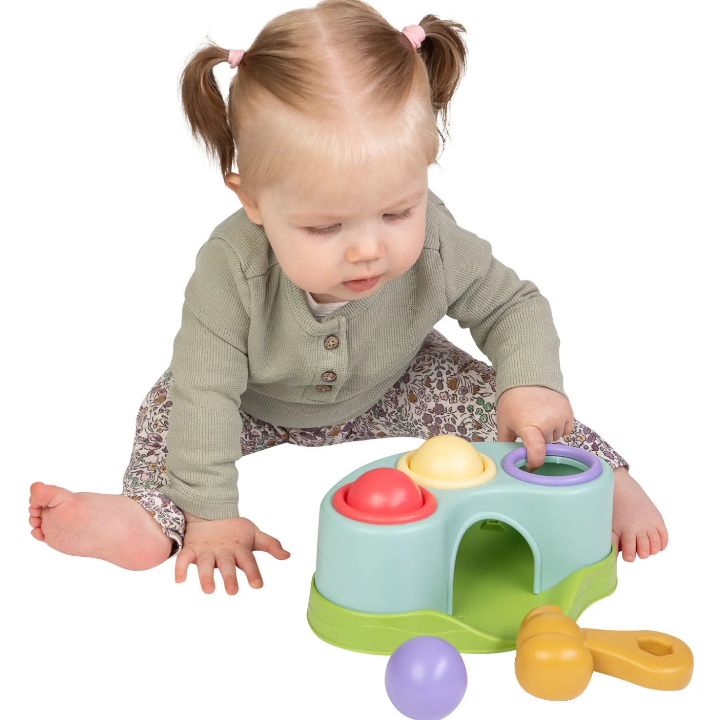 De hamer ontwikkelt de motoriek en behendigheid van je kind. Probeer de 3 ballen met een hamer te raken zodat ze in de inkeping vallen en er weer uit rollen. Gemaakt van bio-based plastic. Geschikt voor kinderen vanaf 1 jaar.