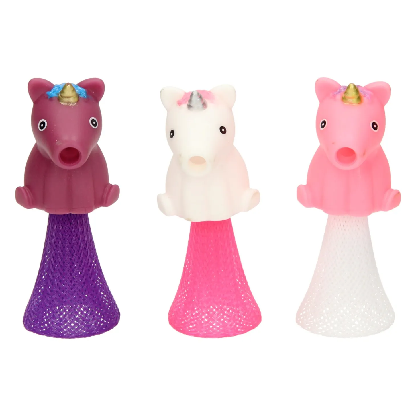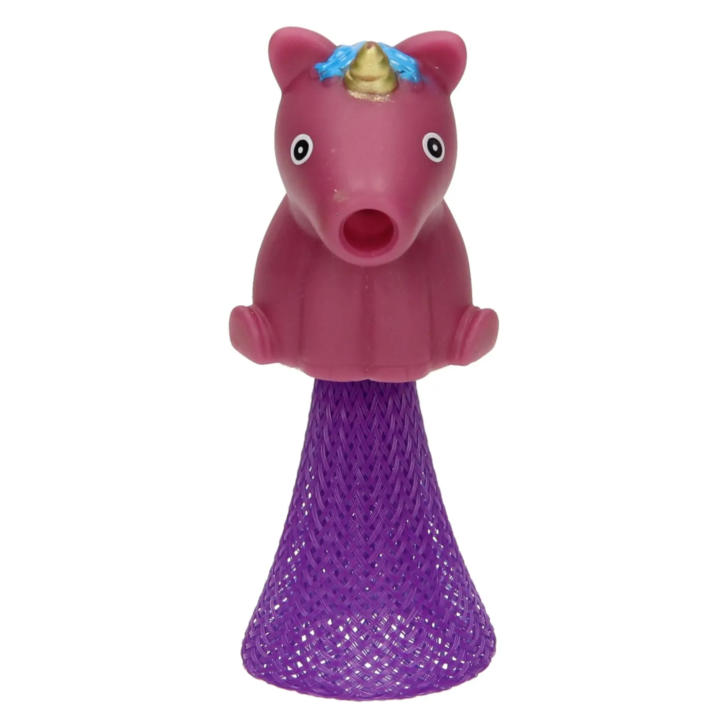 Deze grappige pop-up unicorn kan superhoog springen! Zet hem op een tafel of vlakke ondergrond, duw hem naar beneden, wacht even en… daar vliegt hij de lucht in! Geschikt voor kinderen van 3 jaar en ouder.Prijs per stuk, verschillende uitvoeringen/kleuren worden door elkaar geleverd.