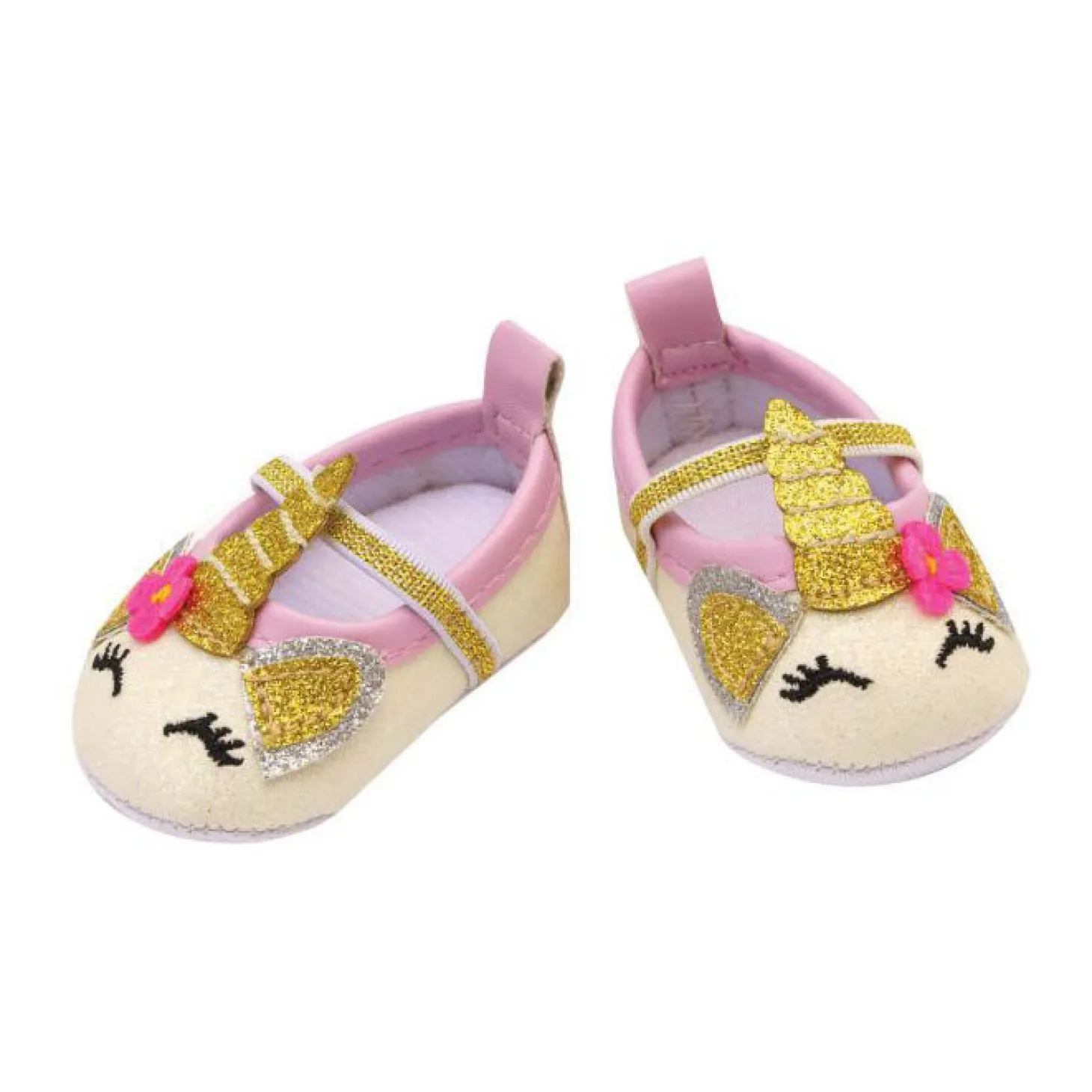 Materiaal: haarband: 100% polyester; Tas: Tas: PU, binnenvoering: 80% polyester, 20% katoen, bloemen en eenhoorn: 100% polyester; Ballerina’s: Bovenmateriaal: PU Voering en zool: 80% katoen, 20% polyester.