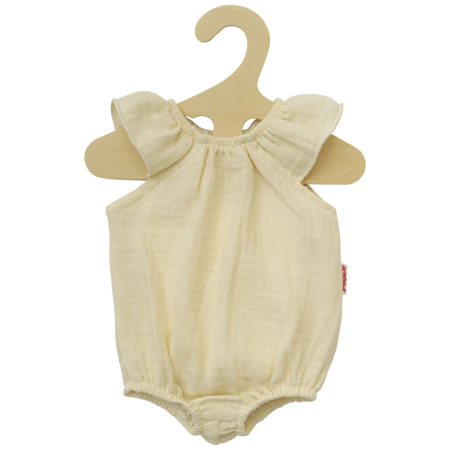 De klittenbandsluiting zorgt ervoor dat het poppenlichaam heel gemakkelijk aan- en uitgetrokken kan worden. De bodysuit past op de meeste poppen op de markt met een lengte van 28-35 cm . Het is ook verkrijgbaar in een andere versie voor poppen van 35-45 cm (art.nr. 2412). Het artikel wordt geleverd op een houten hanger.