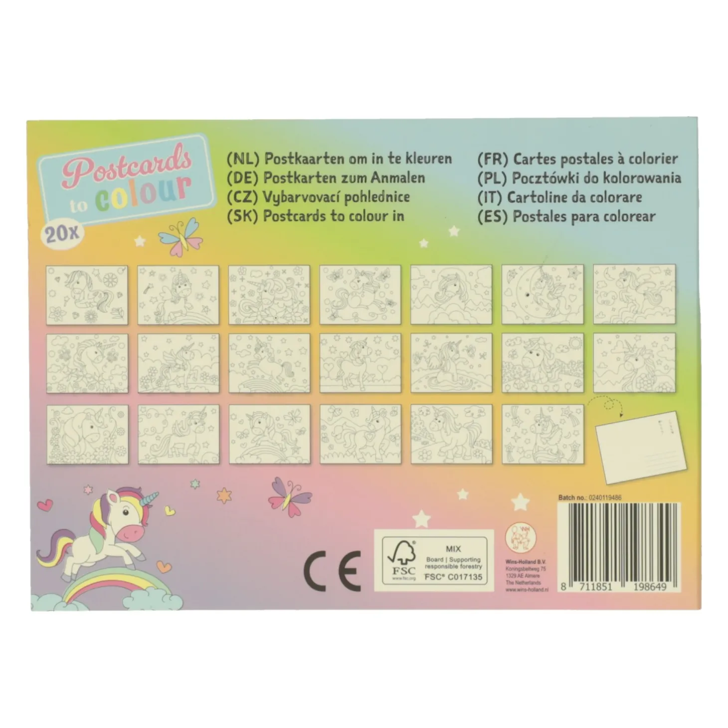 Het tekenboekje bevat 20 verschillende eenhoorn kleurplaten met achterop ruimte om te schrijven. Het formaat is 16,5 x 12 cm.