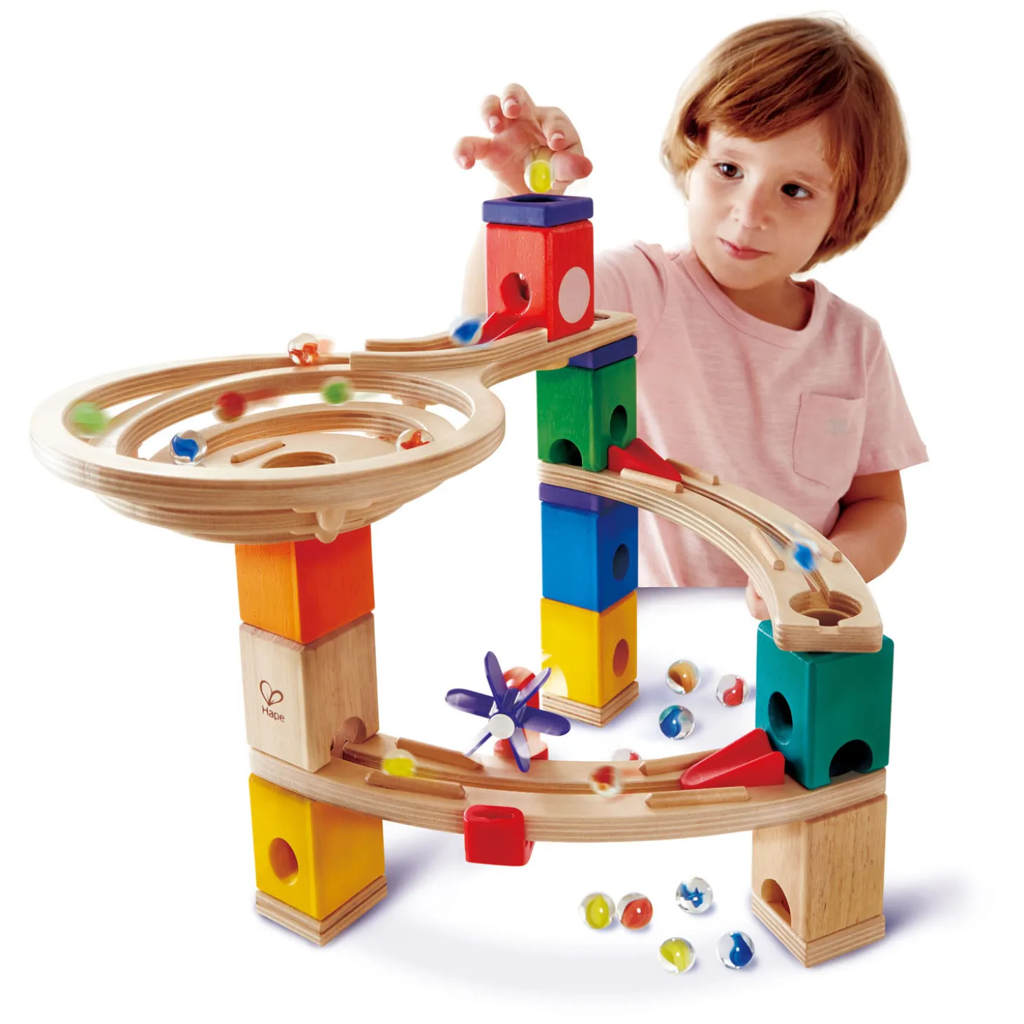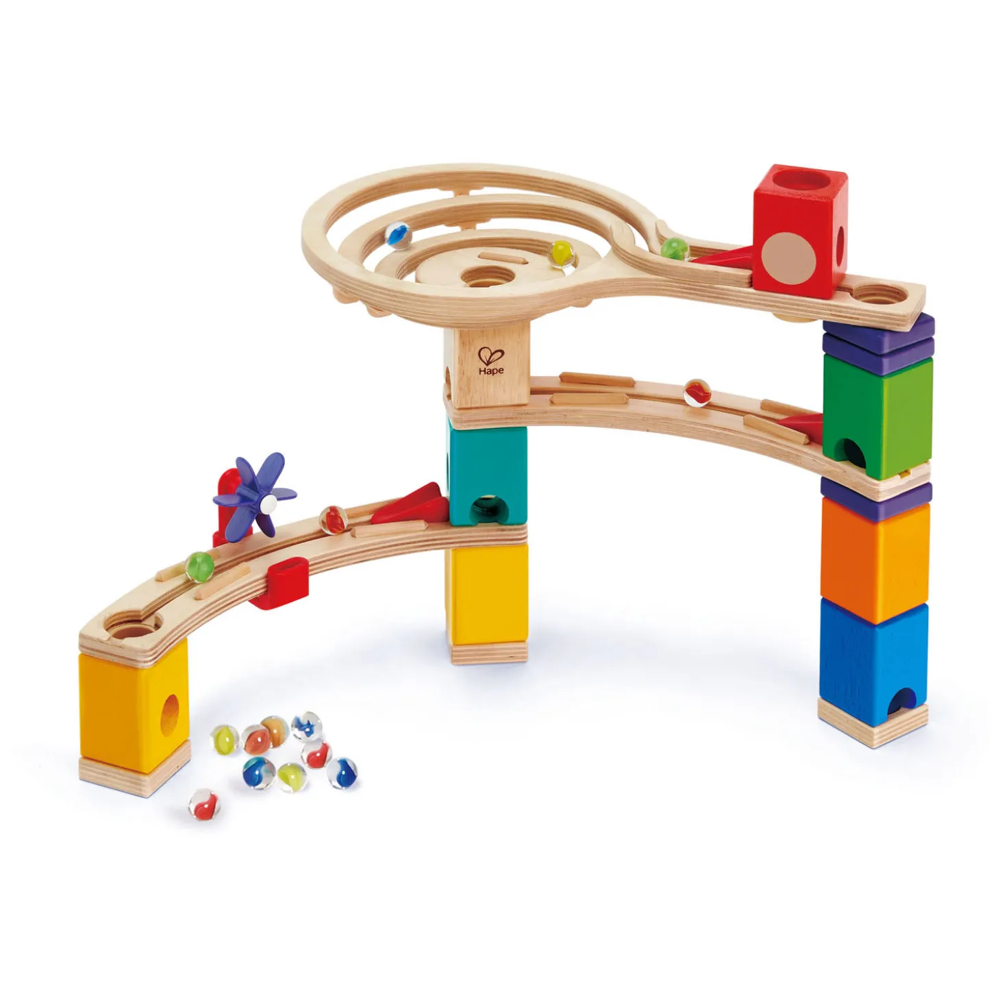 • Knikkerbaan bouwspeelgoed gemaakt van duurzaam hout en niet-giftige verf op waterbasis