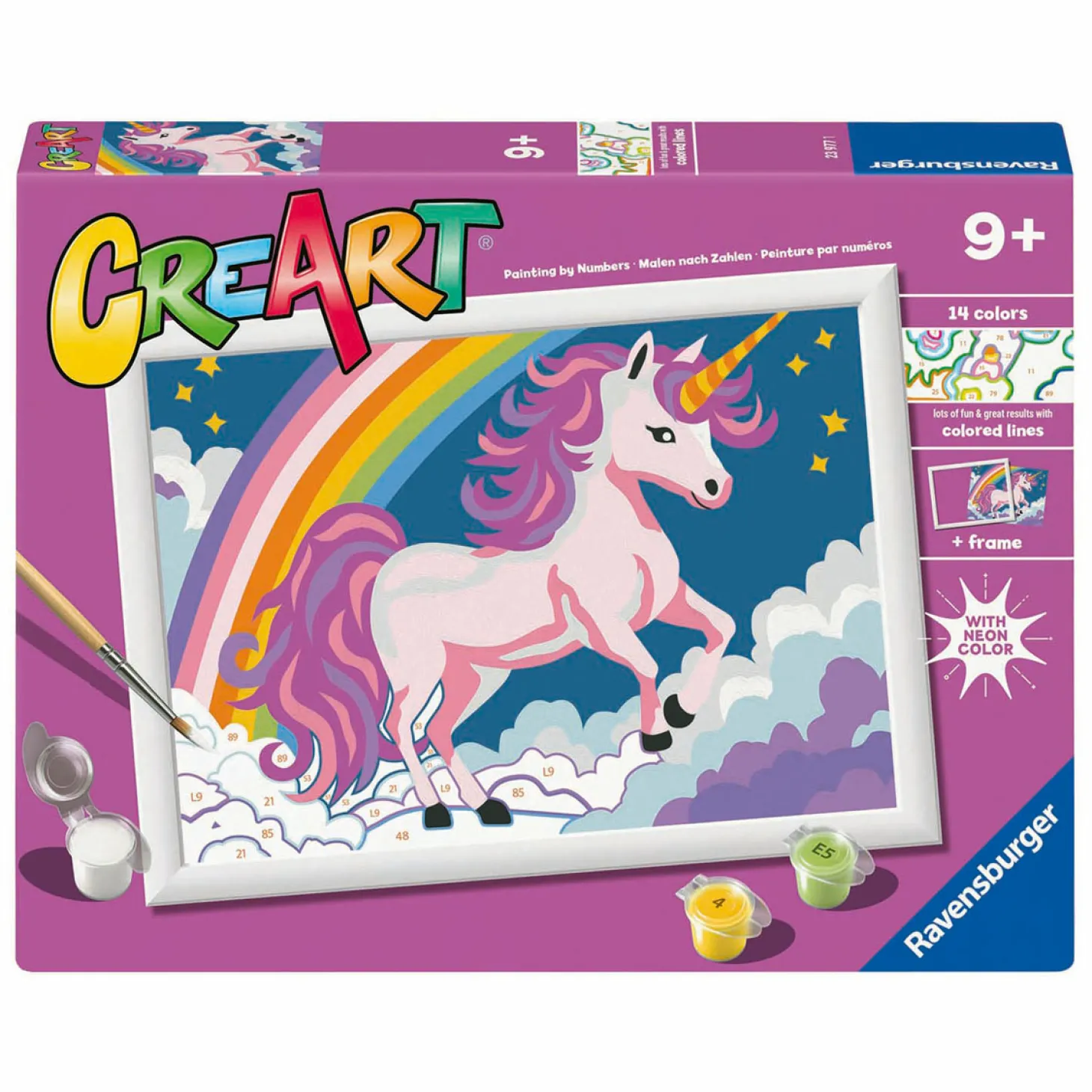Dankzij de gekleurde buitenlijnen kunnen kinderen de afbeelding van en de benodigde kleuren sneller herkennen. Zo is het kinderlijk eenvoudig de kunstenaar in jezelf wakker te maken! Met grote schilderoppervlakken en veel verschillende kleuren zijn de schilderplaten van CreArt zeer geschikt voor de jonge kunstenaar vanaf 7 jaar. Uitpakken en aan de slag!
