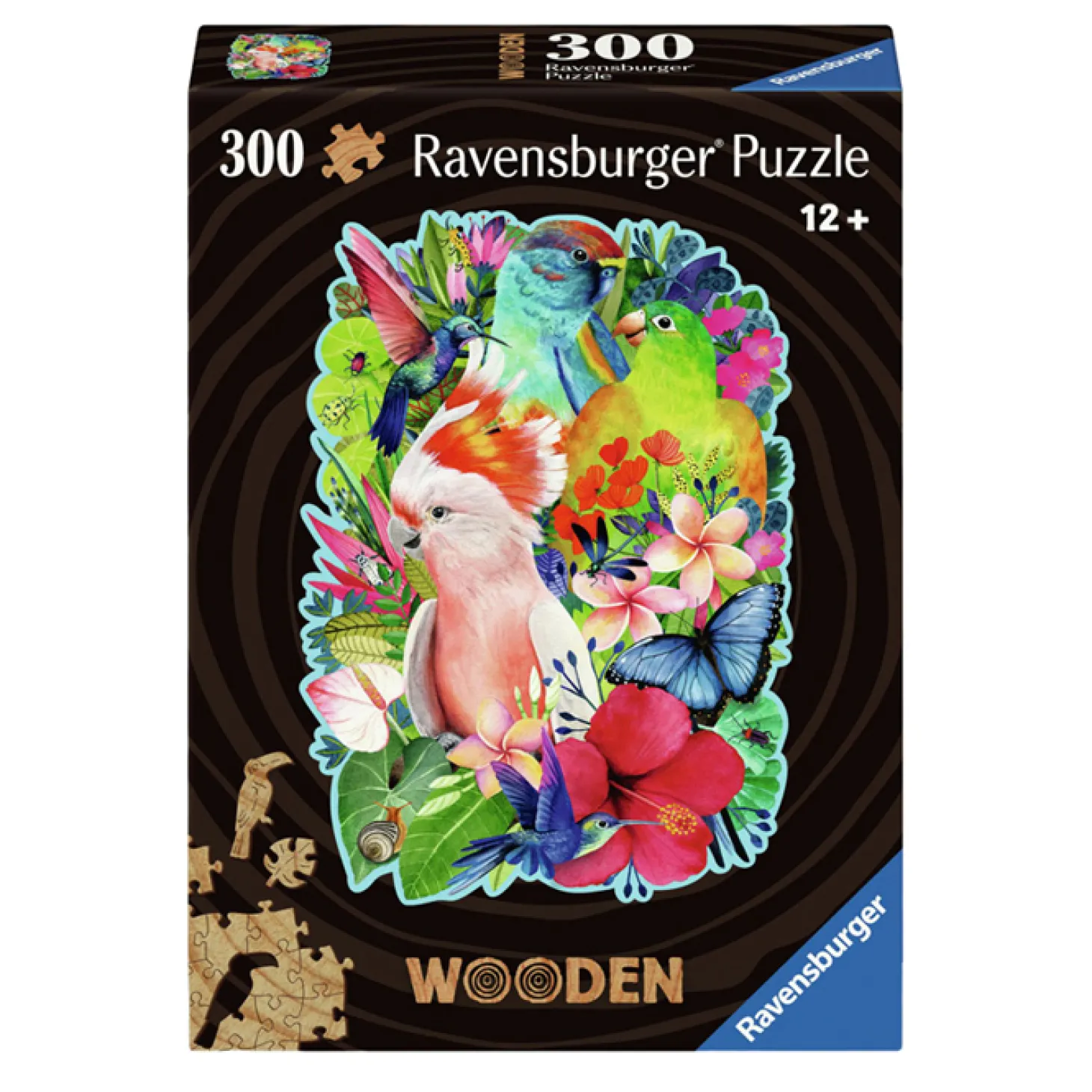 Beautiful Birds houten contourpuzzel met 300 stevige, onregelmatig gevormde puzzelstukjes en met WHIMSIES: kleine houten figuren, die bij het motief passen.