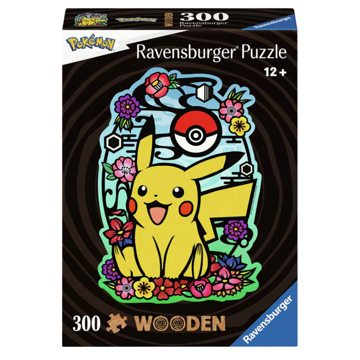 Pokémon Pikachu houten contourpuzzel met 300 stevige, onregelmatig gevormde puzzelstukjes en met WHIMSIES: kleine houten figuren, die bij het motief passen.