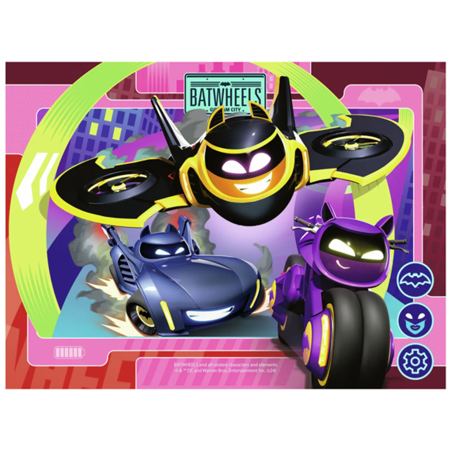 Ontsnap uit de realiteit en stap in de wereld van Ravensburger puzzels. Tijdens het puzzelen ontdekken kinderen hun grootse vaardigheden. Maak wel 4 verschillende puzzels met de speciale puzzle box van Ravensburger! Dankzij de met de hand gemaakte stansmessen is de vormvariatie van de stukjes oneindig. Kinderen vanaf 3 jaar zullen genieten van de Batwheels puzzels met 12, 16, 20, 24 stukjes.