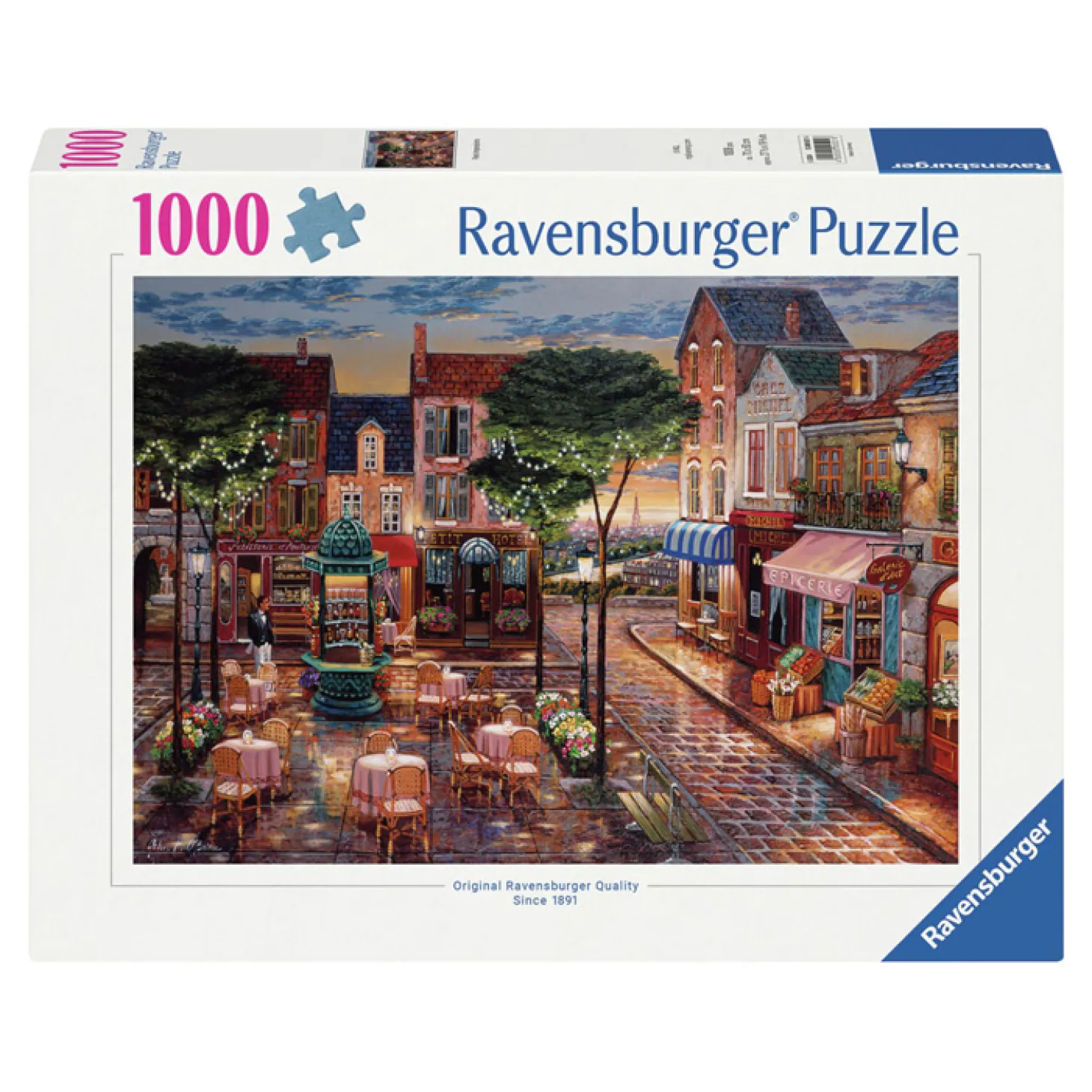 Ontsnap uit de realiteit en stap in de wereld van Ravensburger puzzels. Deze Ravensburger puzzel van 1000 stukjes is geschikt voor zowel beginnende als ervaren puzzelaars. En omdat onze geliefde puzzels een standaard formaat hebben, kun je het resultaat inlijsten en ophangen. Dankzij de met de hand gemaakte stansmessen is de vormvariatie van de stukjes oneindig. Jong en oud zullen genieten van deze Geschilderd Parijs puzzel met 1000 stukjes.