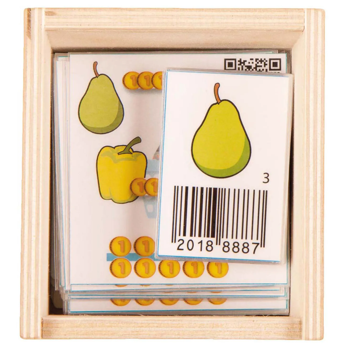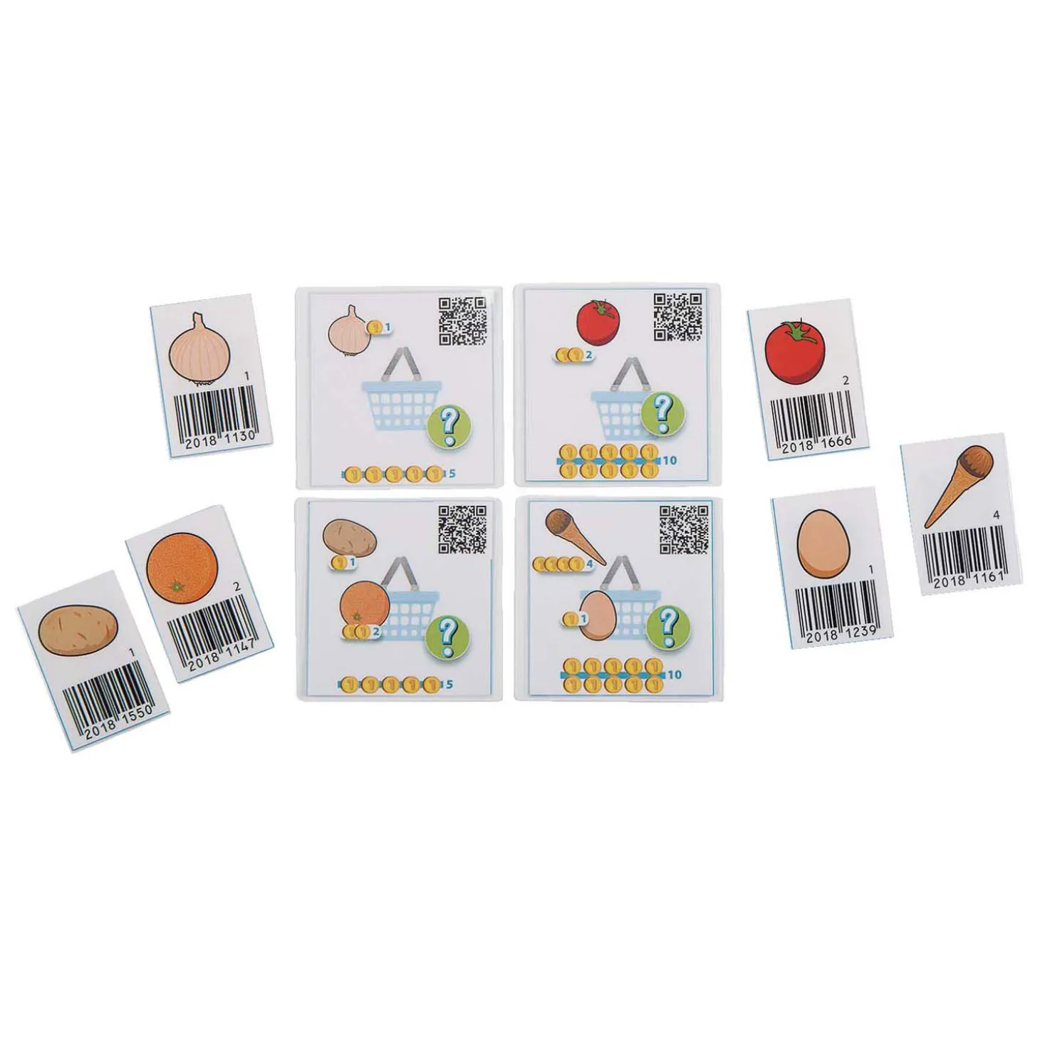 Het Barcodespel van Rolf daagt kinderen om rekenopdrachten van 5 tot en met 10 te maken. Via de Rolf App krijgen ze feed-back op de aankopen en zien ze of de berekeningen goed zijn. Het spel bevat 18 kaarten met fruit & groenten voorzien van een barcode, 20 kaarten met rekenopdrachten en een handleiding.