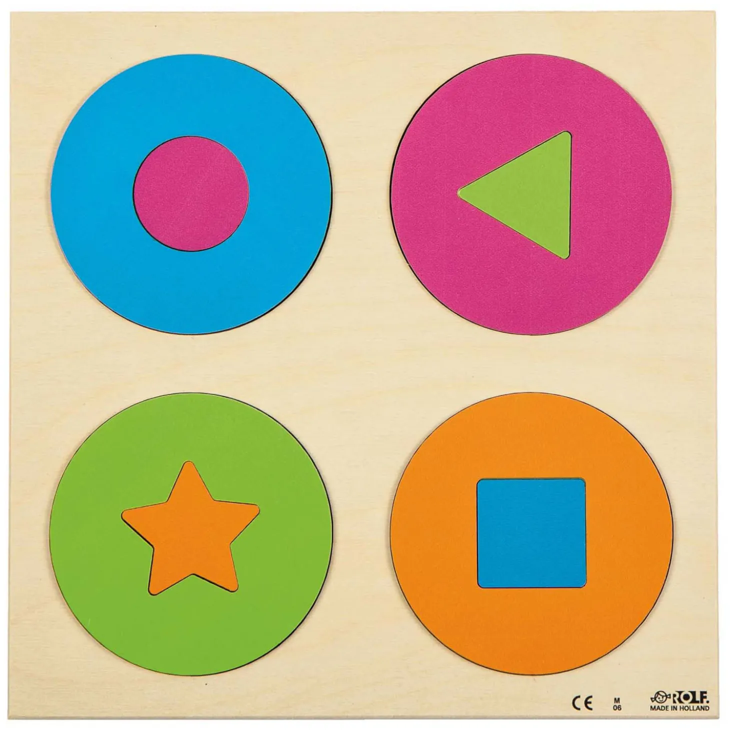 Met deze 2 reliëfpuzzels ervaren kinderen dat vormen en kleuren verschillen. Ze leren kleuren én vormen als cirkel, vierkant, driehoek en ster benoemen. Het formaat van de reliëfpuzzels is 24,5 x 24,5 cm. De puzzels zijn geschikt voor kinderen vanaf 3 jaar.