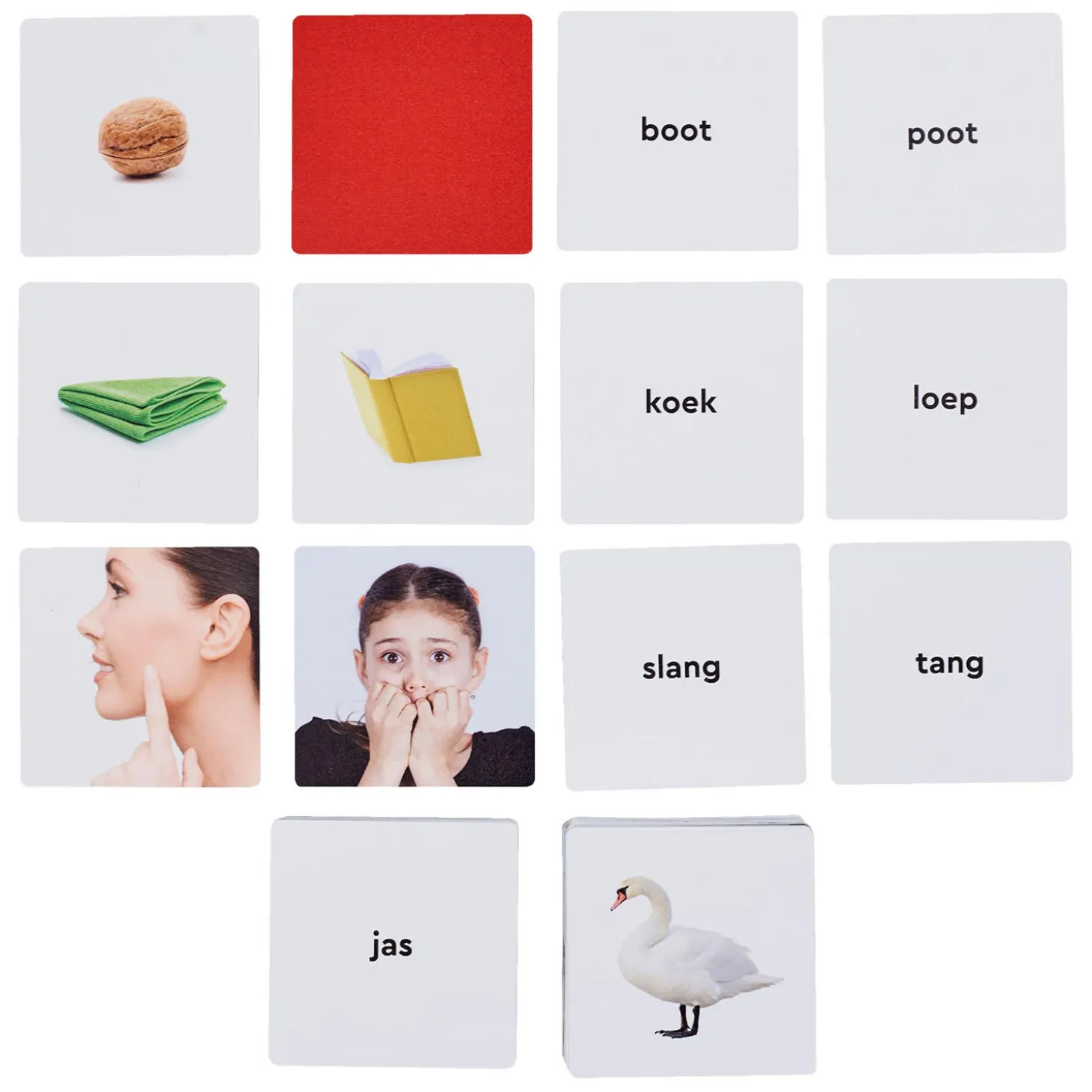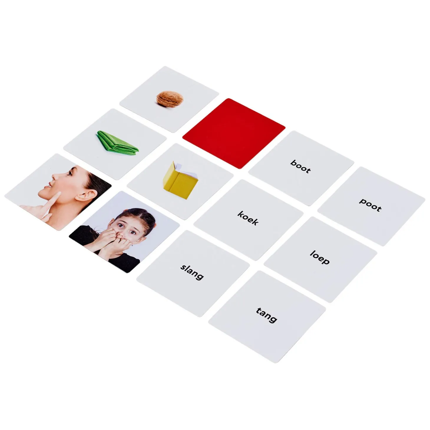 • Kaartenset 2: 54 woordkaarten, die corresponderen met woorden op de mat.