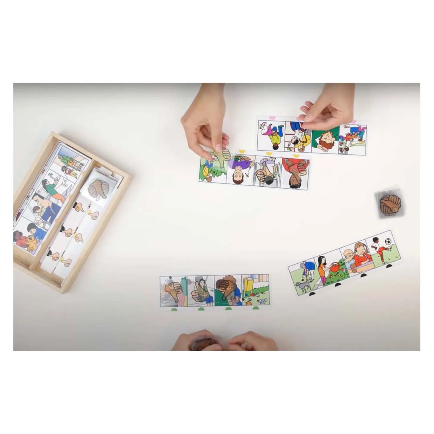 ‘Ok of niet Ok’ legt allerlei situaties voor die de kinderen zelf mogen beoordelen. Ze zijn het niet altijd eens, en dan volgt een leerzaam gesprek. Het fijne van dit spel is dat je de kinderen tips en houvast kunt geven voor situaties die vervelend zijn. In de blankhouten doos vind je: 12 kunststof stroken met telkens 4 afbeeldingen, 12 kunststof controlestroken, 48 transparante kunststof kaartjes met duim en 1 uitgebreide handleiding.