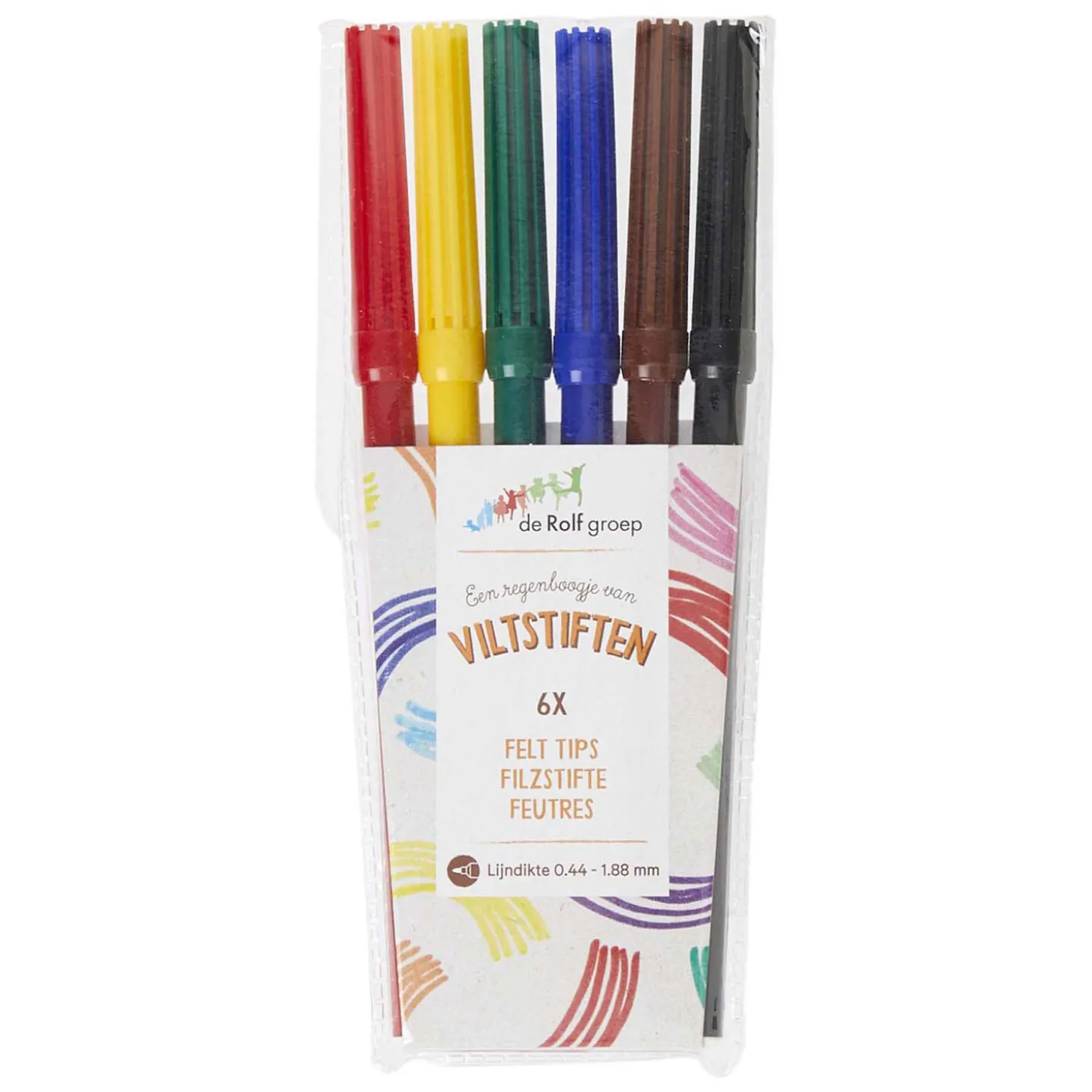 Tekenen en kleuren met viltstiften geeft een heel andere beleving dan met kleurpotlood. De kleuren zijn feller en harder en het resultaat is definitief. Deze viltstiften van de Rolf groep – met een puntdikte van 2 mm – hebben een uitstekende prijs-kwaliteitverhouding. Ze zijn bovendien glutenvrij.