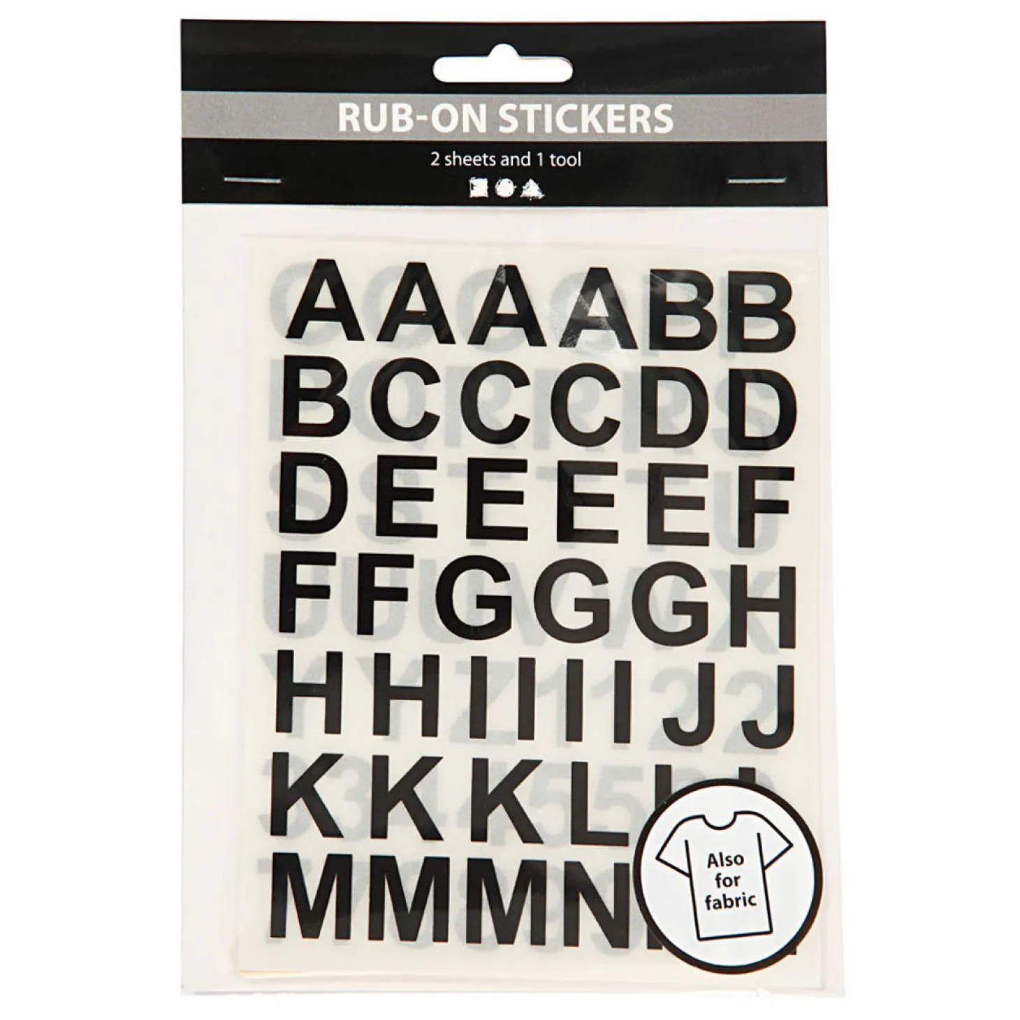 Rub-On Stickers Letters en Cijfers Zwart, 2 Vellen