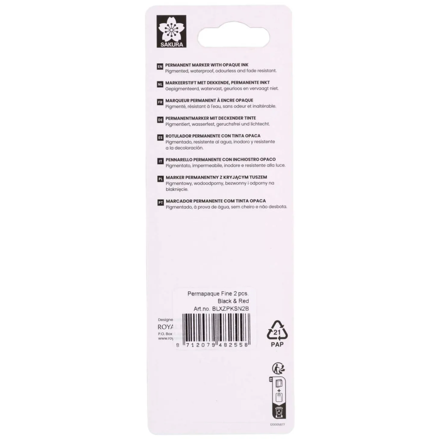 Sakura Permapaque is een unieke, universele permanente markeerstift met watergedragen pigmentinkt. Deze dekkende stift bevat een fijne punt (1 mm) en hoeft niet geschud of gepompt te worden voor gebruik. Dankzij de speciale inkt garandeert Permapaque een permanente, dekkende afwerking.