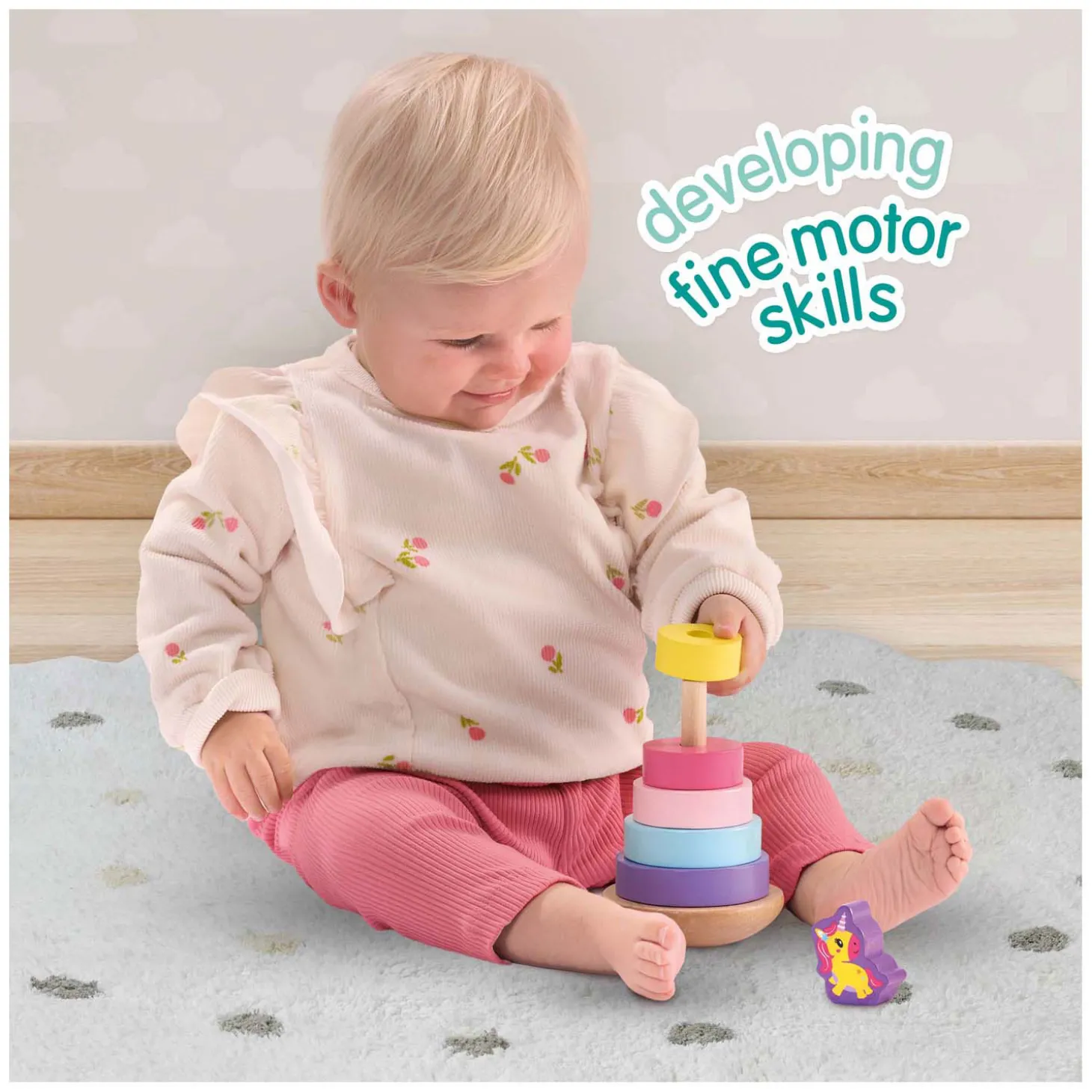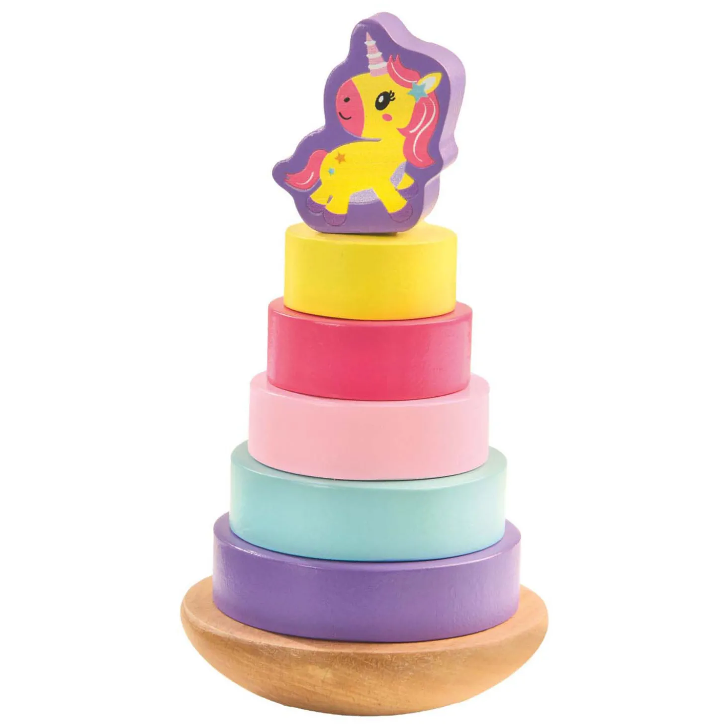 Laat je kind spelen en leren met de Houten stapeltoren unicorn! Deze stapelbare ringentoren bestaat uit 5 vrolijk gekleurde houten ringen van verschillende afmetingen en een bedrukt unicorn figuur. De ringenLaat je kind spelen en leren met de Houten stapeltoren unicorn! Deze stapelbare ringentoren bestaat uit 5 vrolijke, modern gekleurde houten ringen van verschillende afmetingen en een leuk unicorn figuur. De ringen kunnen in willekeurige volgorde opgestapeld worden op de balansbodem. De stapeltoren is ideaal voor het ontwikkelen van een goede oog-handcoördinatie. Perfect voor jonge kinderen die spelenderwijs oefenen met kleuren, vormen en gek zijn op roze en unicorns! kunnen in willekeurige volgorde opgestapeld worden op de balansbodem. Deze stapeltoren is ideaal voor het ontwikkelen van een goede oog-handcoördinatie. Perfect voor kinderen die houden van spelen en leren!
